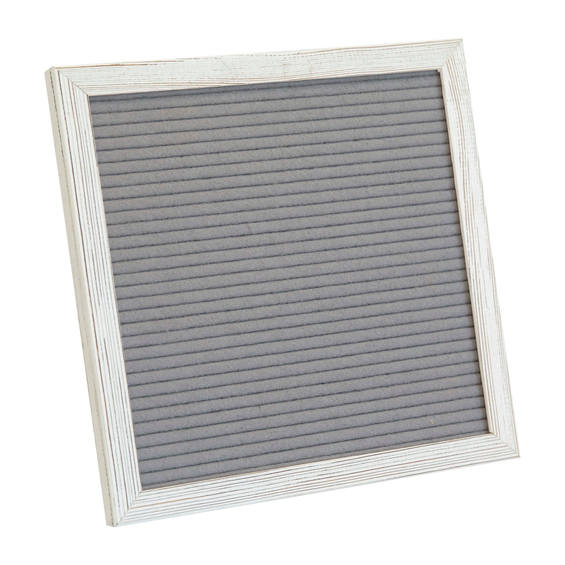 Gracie 10x10 Felt Letter Board with Wooden Frame, 389 PP Letters Including Numbers, Symbols and Icons, Canvas Carrying Case, White Wash/Gray Felt Dimensions: 10"W x 1"D x 10"H