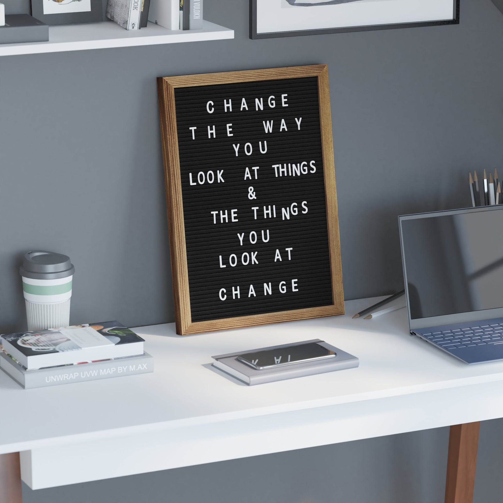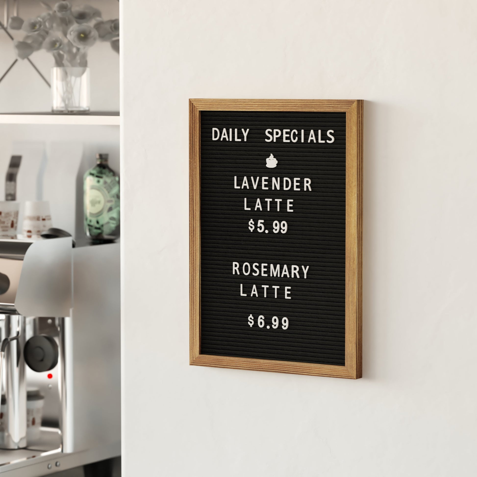 Gracie 12x17 Felt Letter Board with Wooden Frame, 389 PP Letters Including Numbers, Symbols and Icons, Canvas Carrying Case, Torched Wood/Black Felt Dimensions: 12"W x 1"D x 17"H
