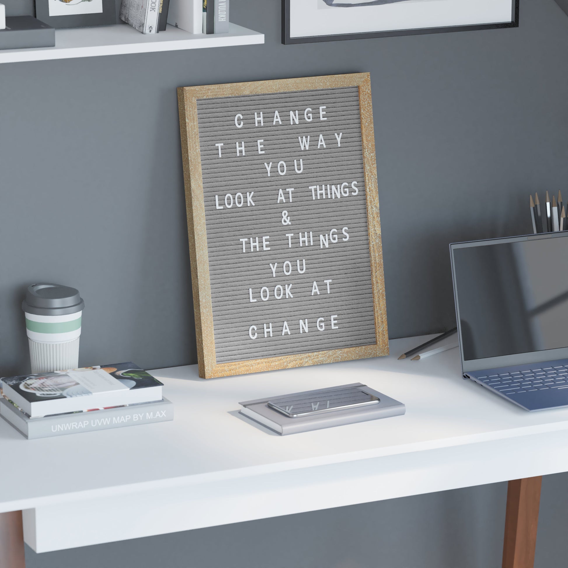Gracie 12x17 Felt Letter Board with Wooden Frame, 389 PP Letters Including Numbers, Symbols and Icons, Canvas Carrying Case, Weathered Wood/Gray Felt Dimensions: 12"W x 1"D x 17"H