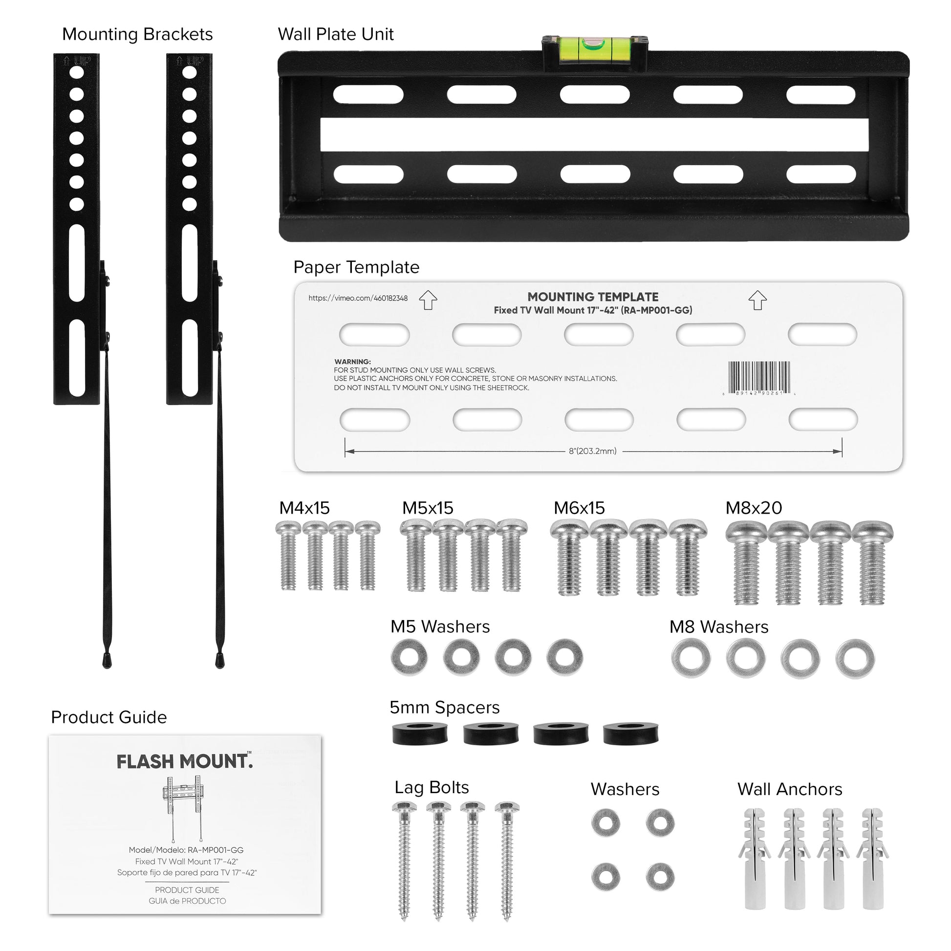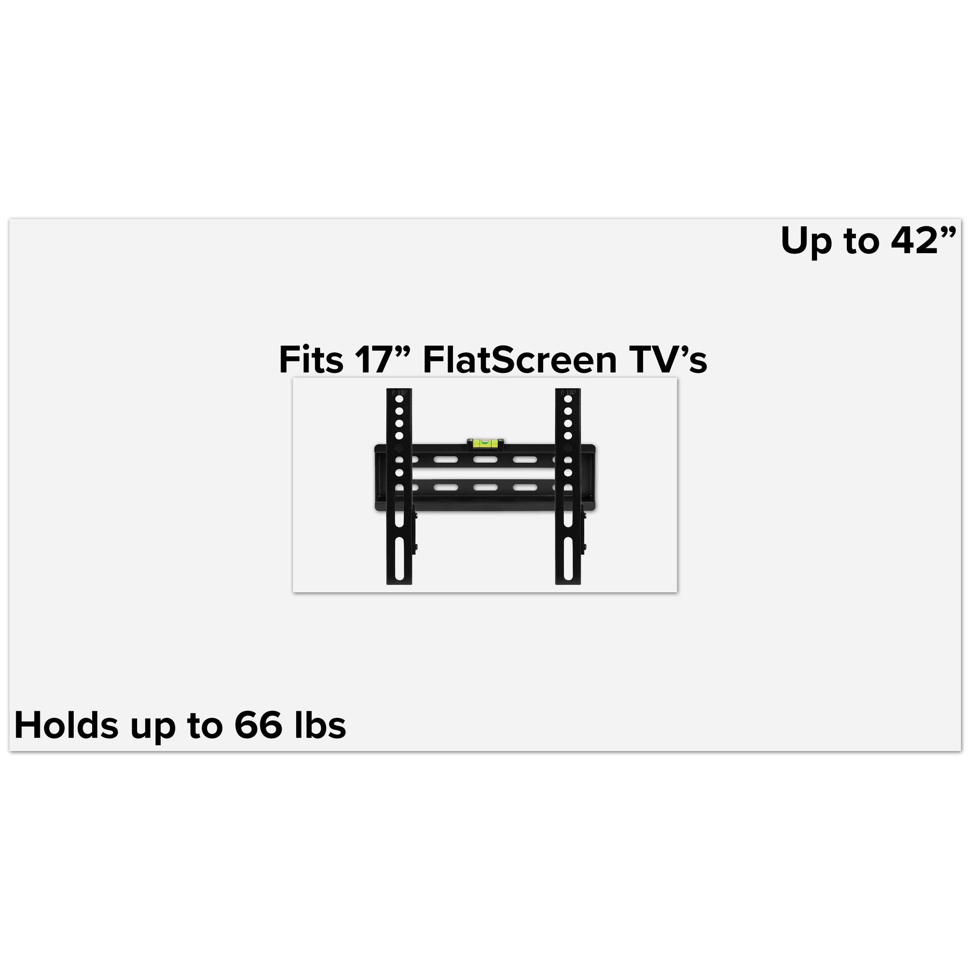 FLASH MOUNT Fixed TV Wall Mount with Built-In Level - Fits most TV's 17"- 42" (Weight Capacity 66LB) Dimensions: 9.75"W x 1"D x 8.75"H