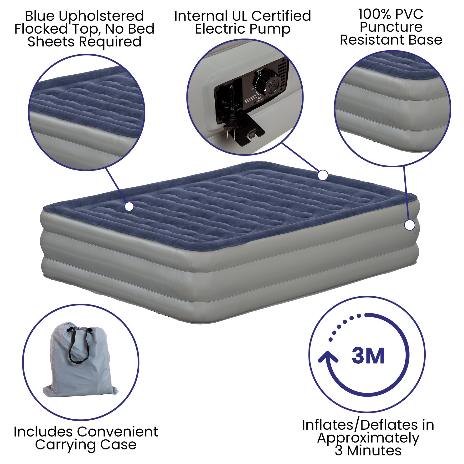 Kellos 18 inch Air Mattress with ETL Certified Internal Electric Pump and Carrying Case - Queen Dimensions: 60"W x 80"D x 18"H