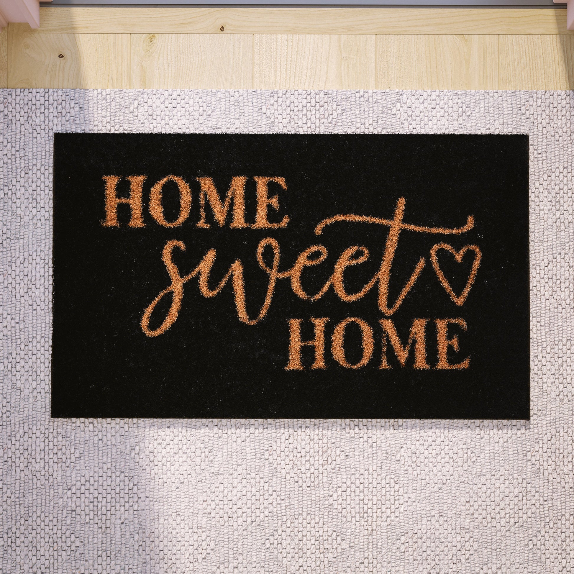 Harbold 18" x 30" Indoor/Outdoor Black Coir Doormat with Natural Home Sweet Home Message and Non-Slip Backing Dimensions: 18"W x 30"D x 0.59"H