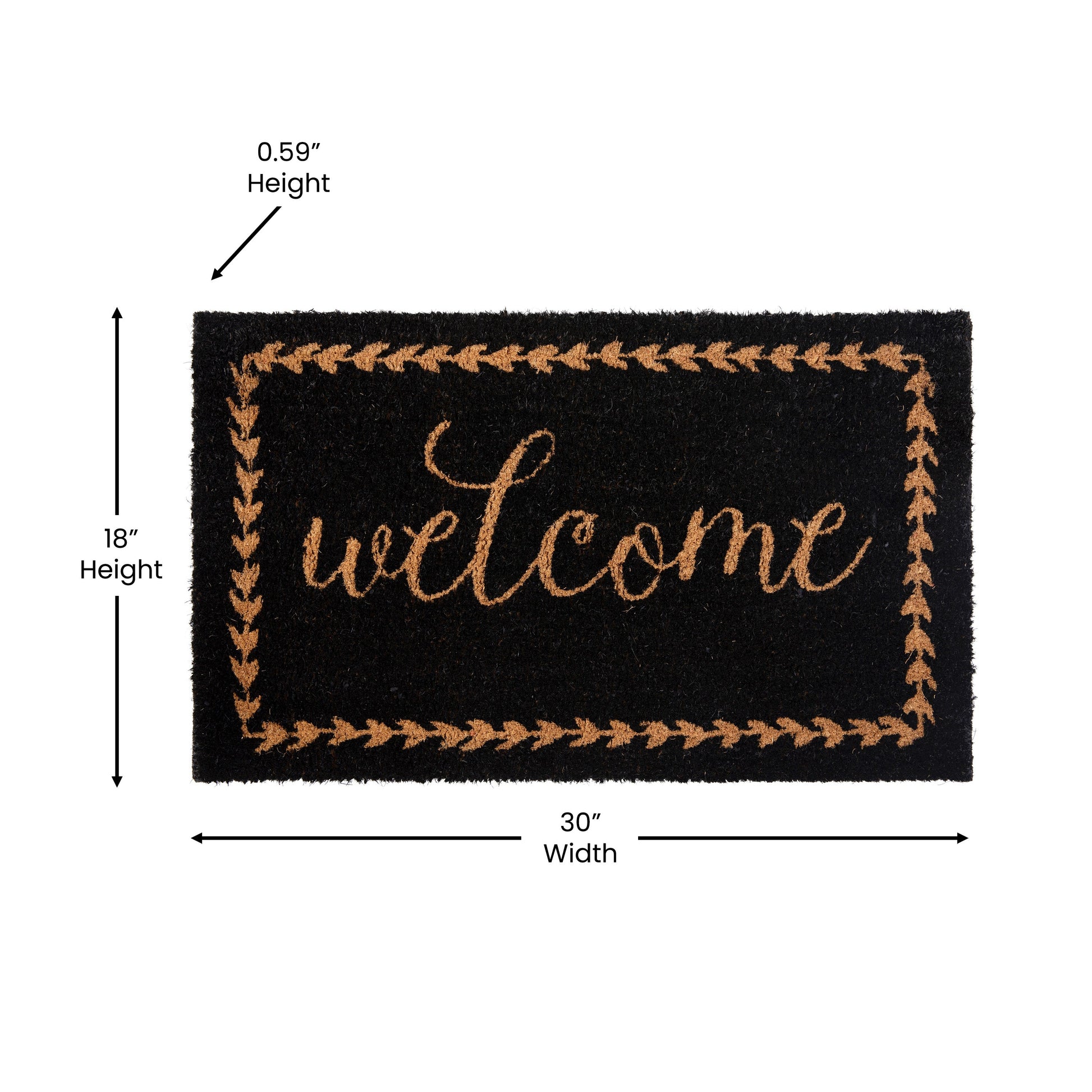 Harbold 18" x 30" Indoor/Outdoor Black Coir Doormat with Natural Welcome Message and Non-Slip Backing Dimensions: 18"W x 30"D x 0.59"H