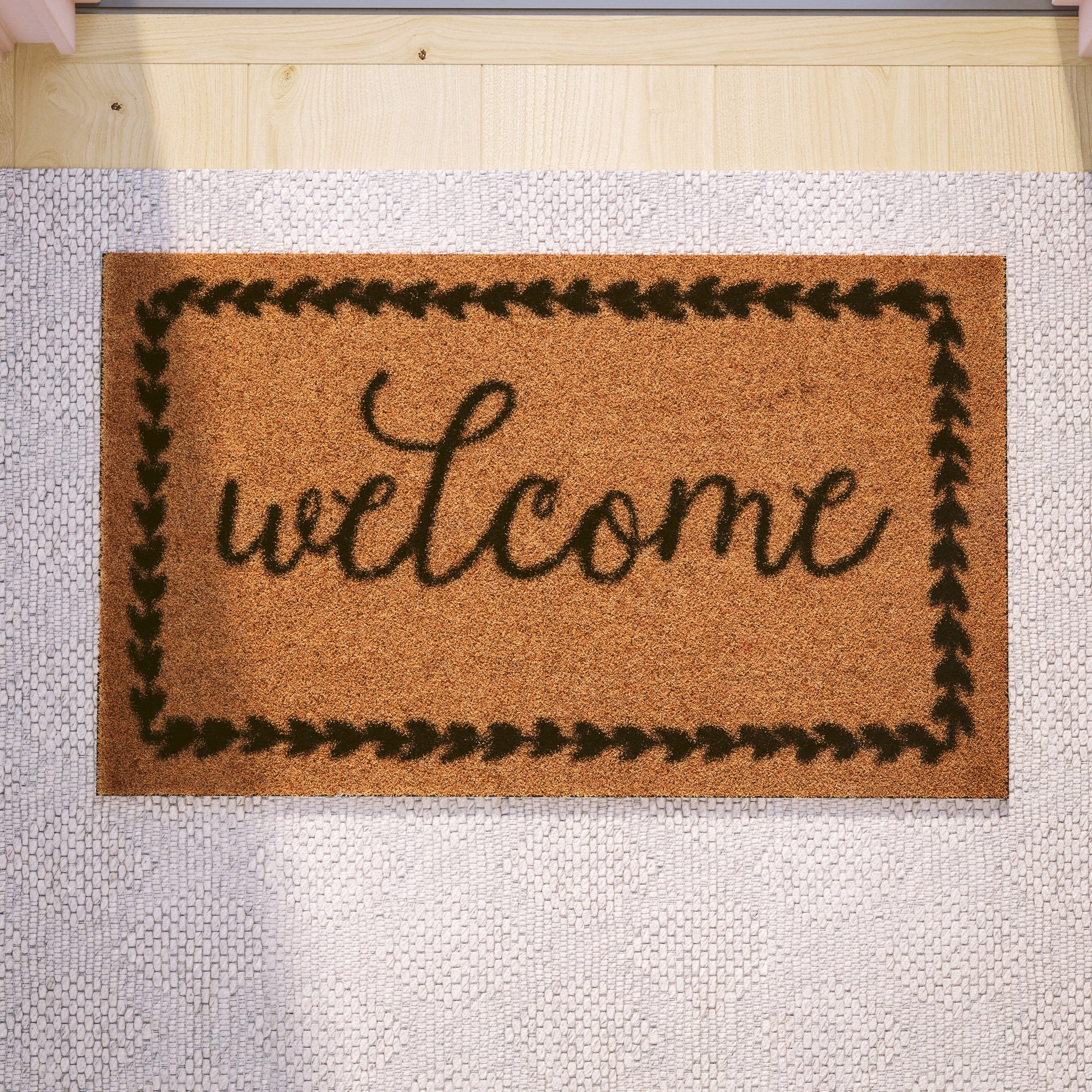 Harbold 18" x 30" Indoor/Outdoor Natural Coir Doormat with Black Welcome Message and Non-Slip Backing Dimensions: 18"W x 30"D x 0.59"H