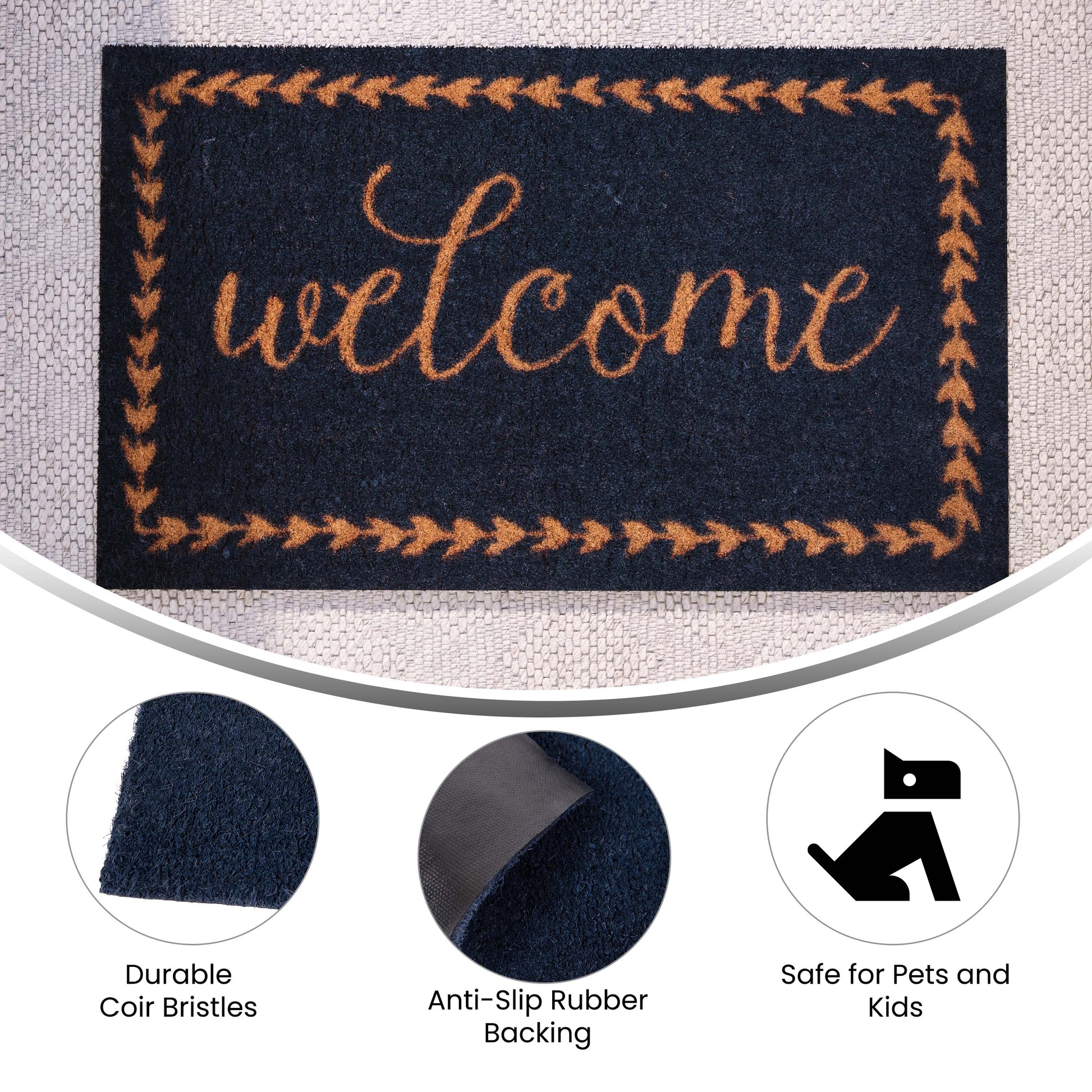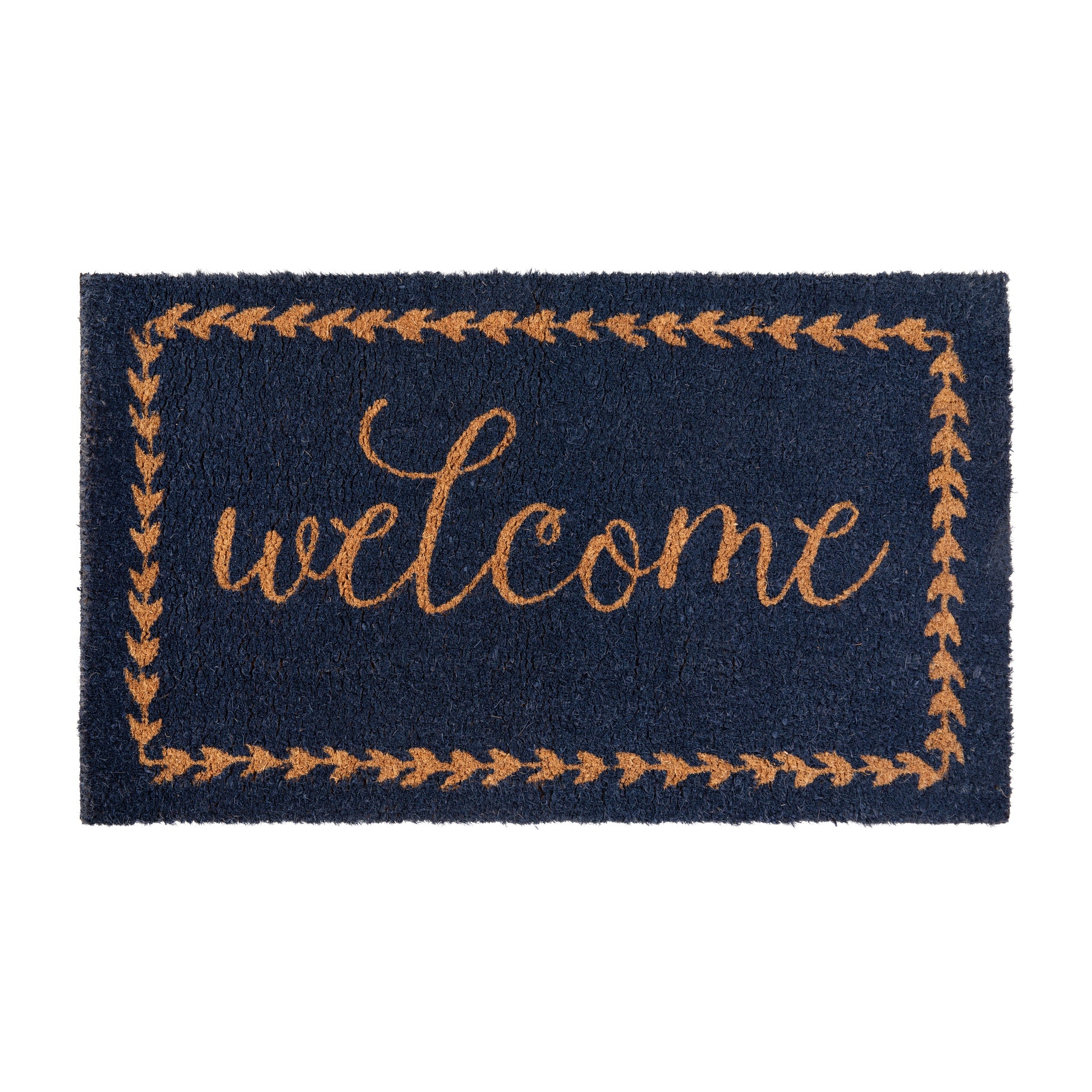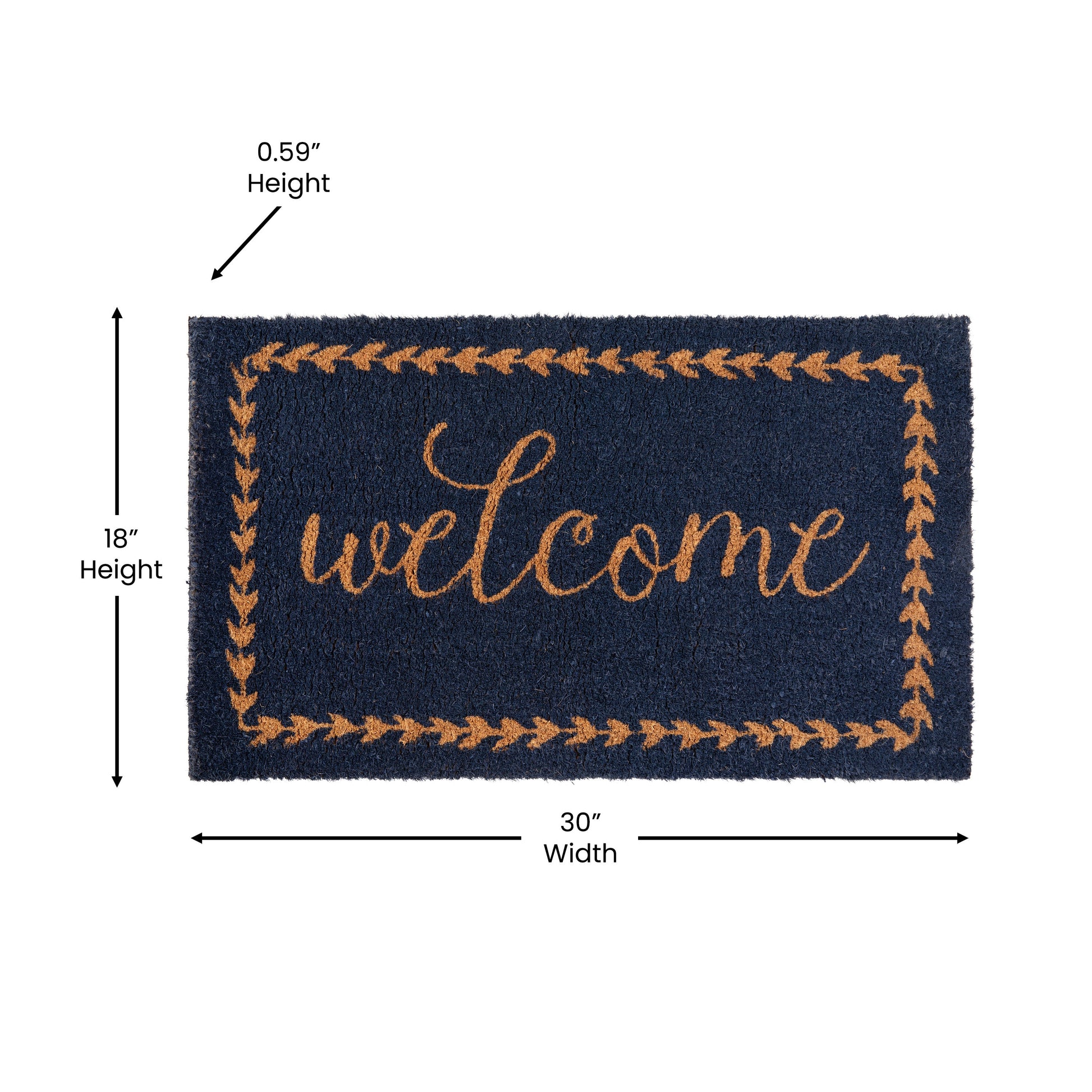 Harbold 18" x 30" Indoor/Outdoor Navy Coir Doormat with Natural Welcome Message and Non-Slip Backing Dimensions: 18"W x 30"D x 0.59"H