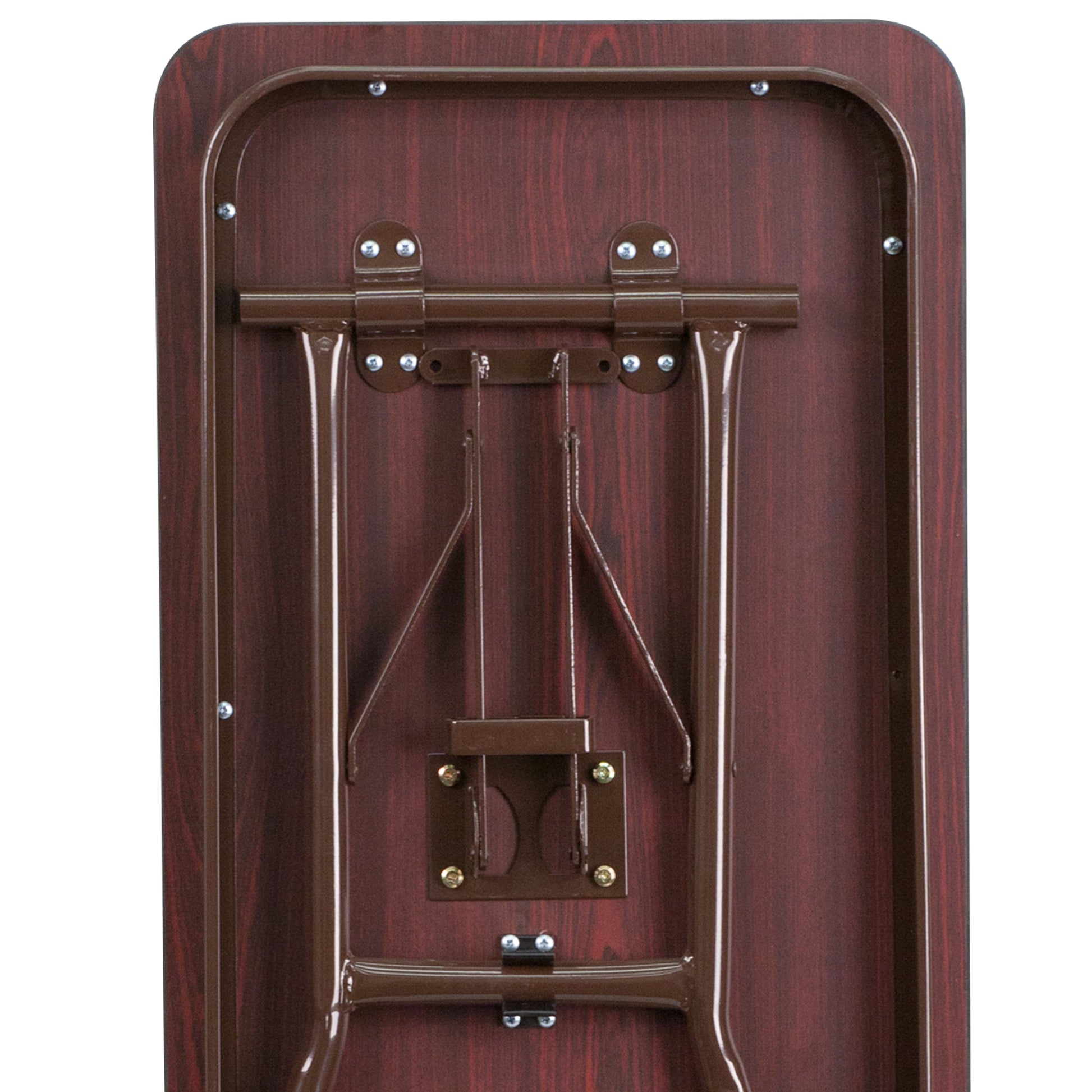 Frankie 5-Foot Mahogany Melamine Laminate Folding Training Table Dimensions: 18"W x 60"D x 30"H