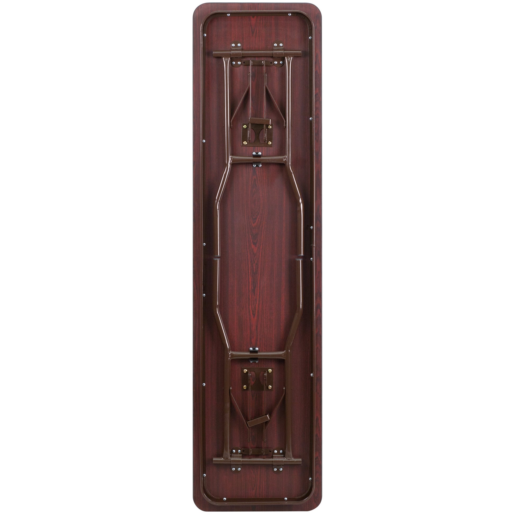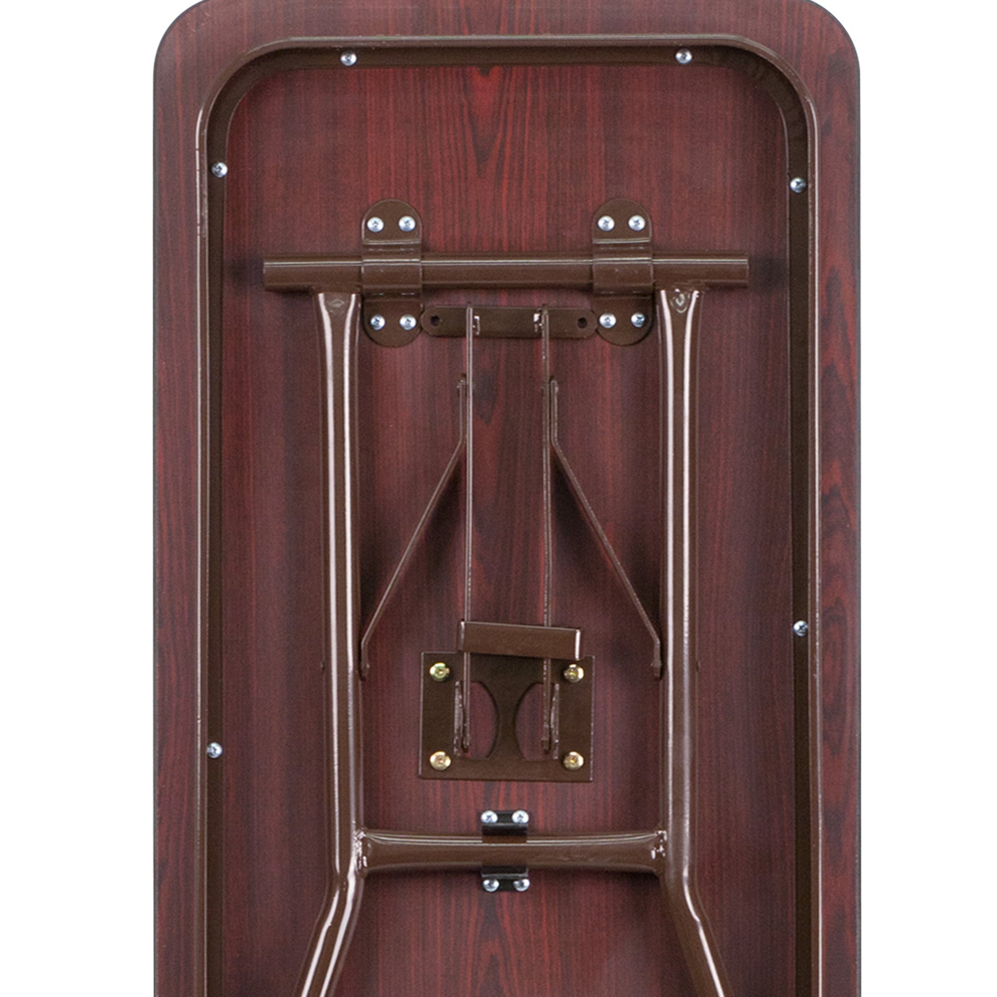 Frankie 6-Foot Mahogany Melamine Laminate Folding Training Table Dimensions: 18"W x 72"D x 30"H
