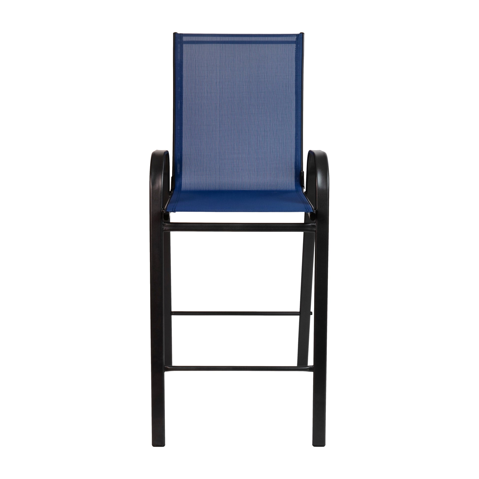2 Pack Brazos Series Navy Outdoor Barstools with Flex Comfort Material and Metal Frame Dimensions: 22"W x 26"D x 50"H