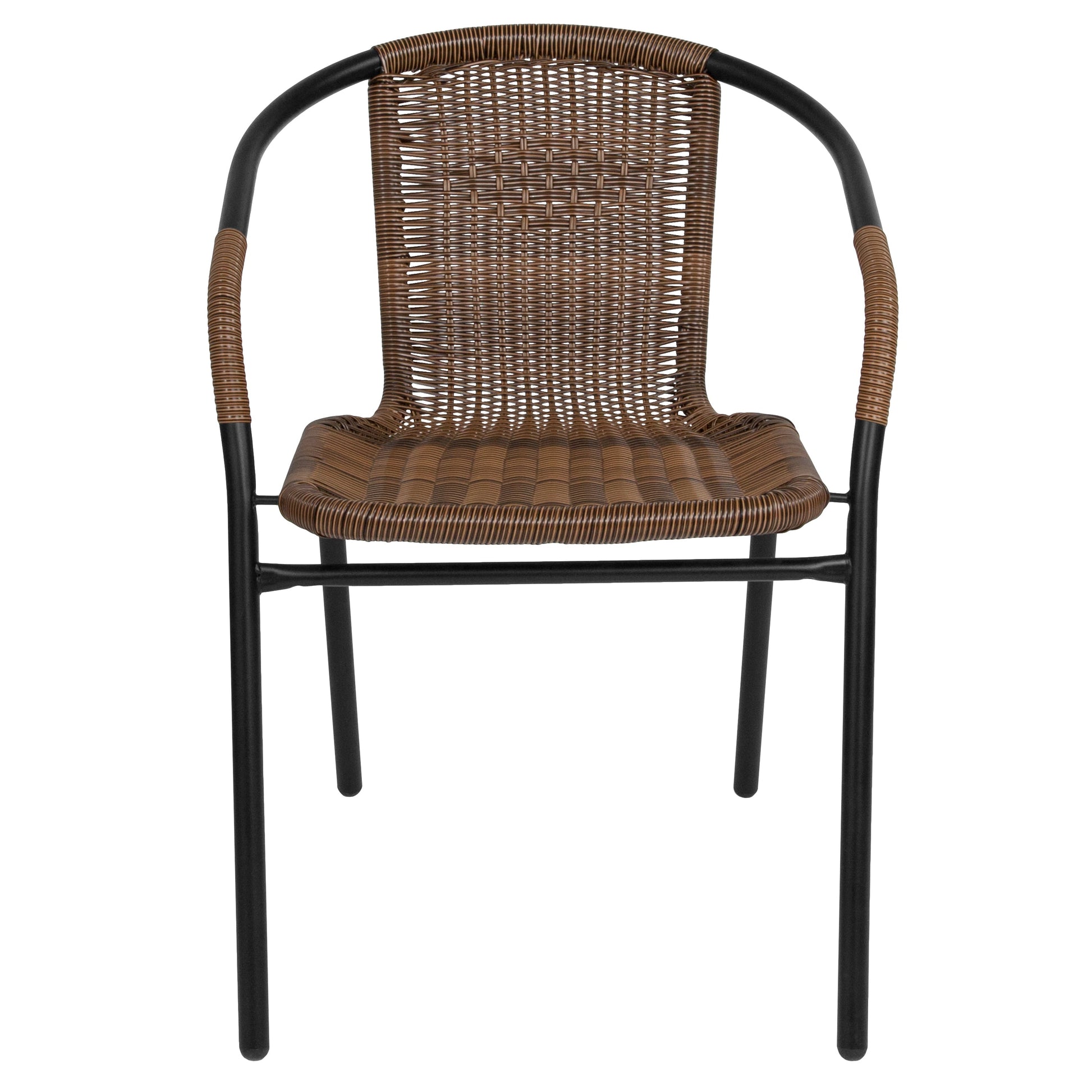 Savor your meals outdoors with family and friends on metal patio chairs.