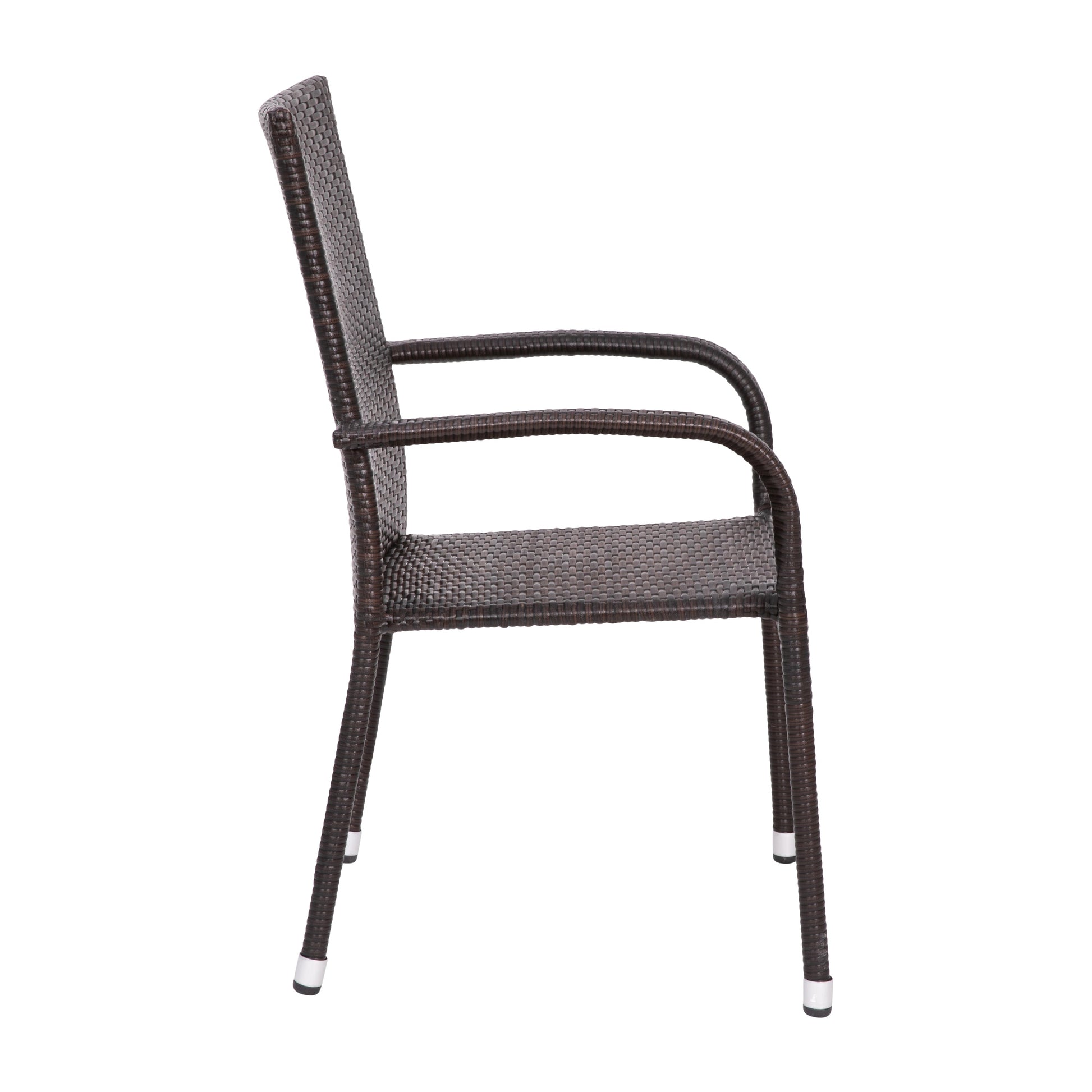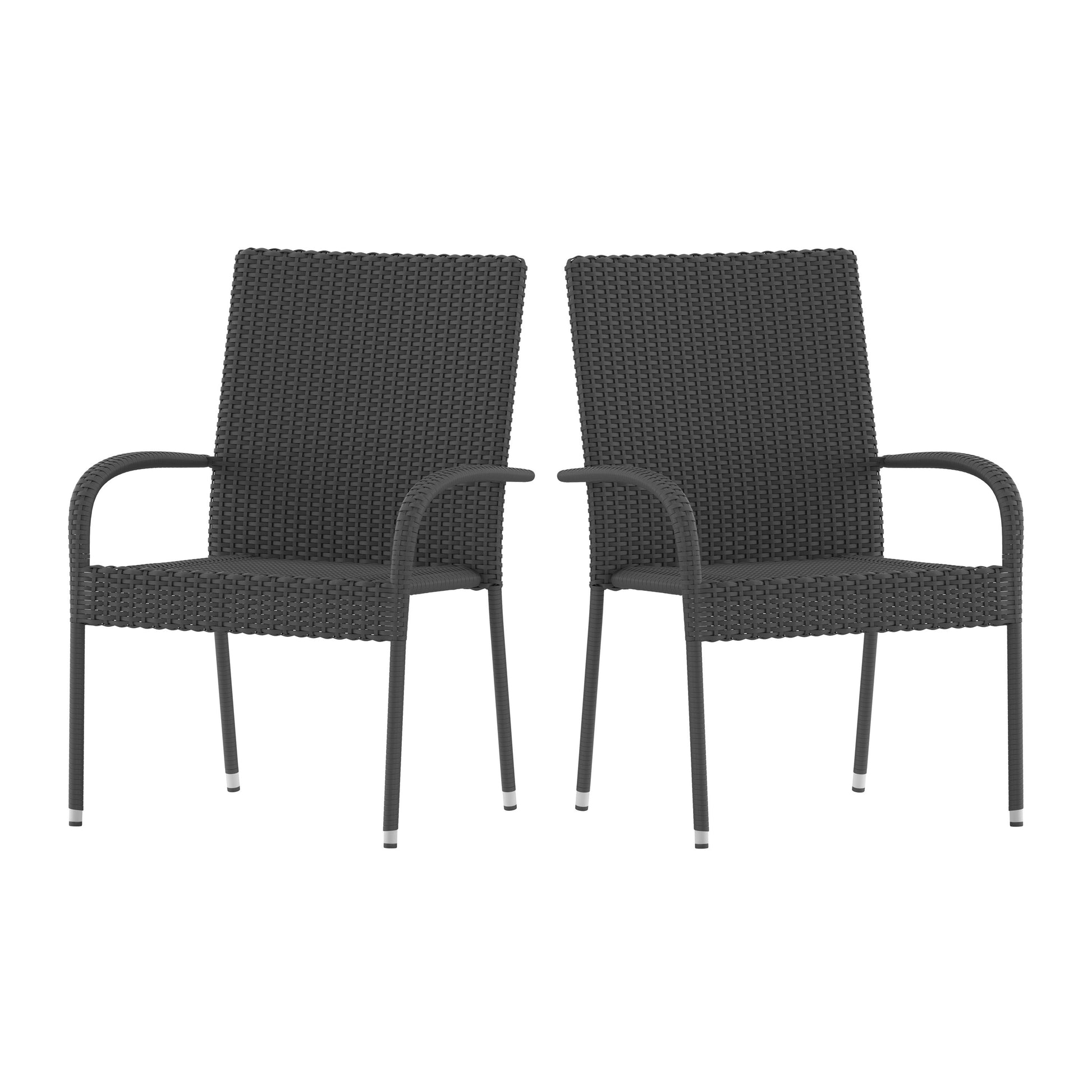 Modern Indoor/Outdoor Stackable Wicker Patio Chairs with Arms - Set of 2