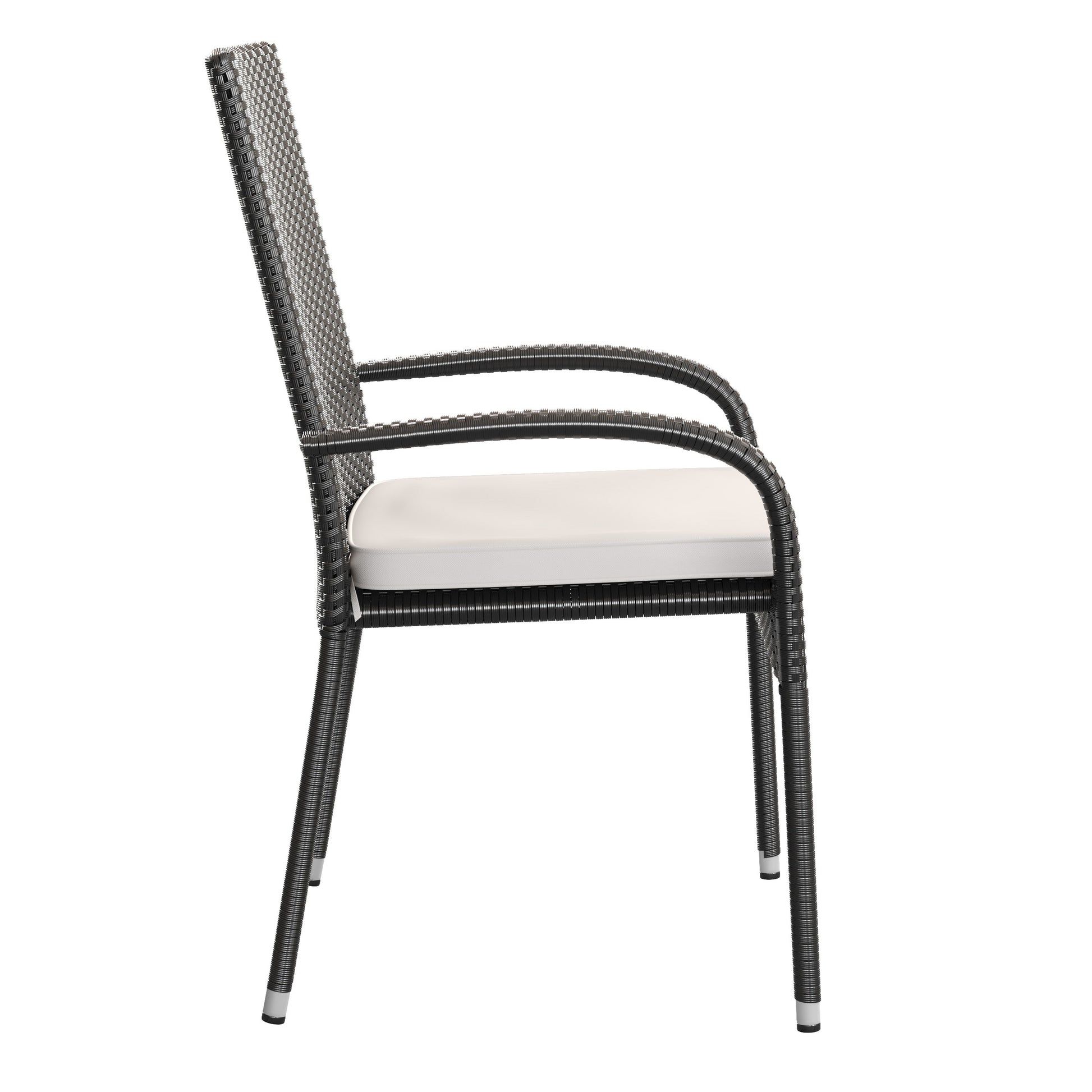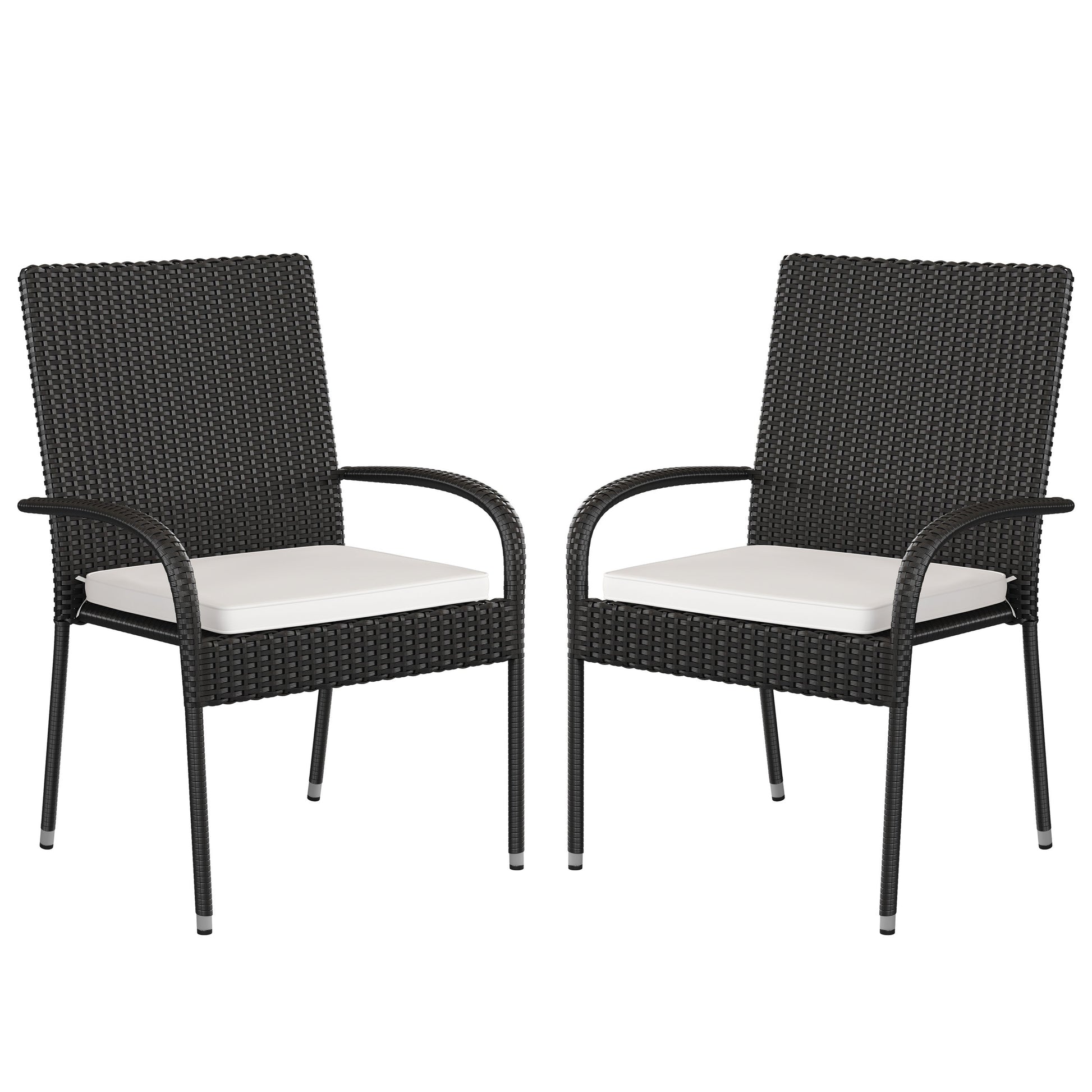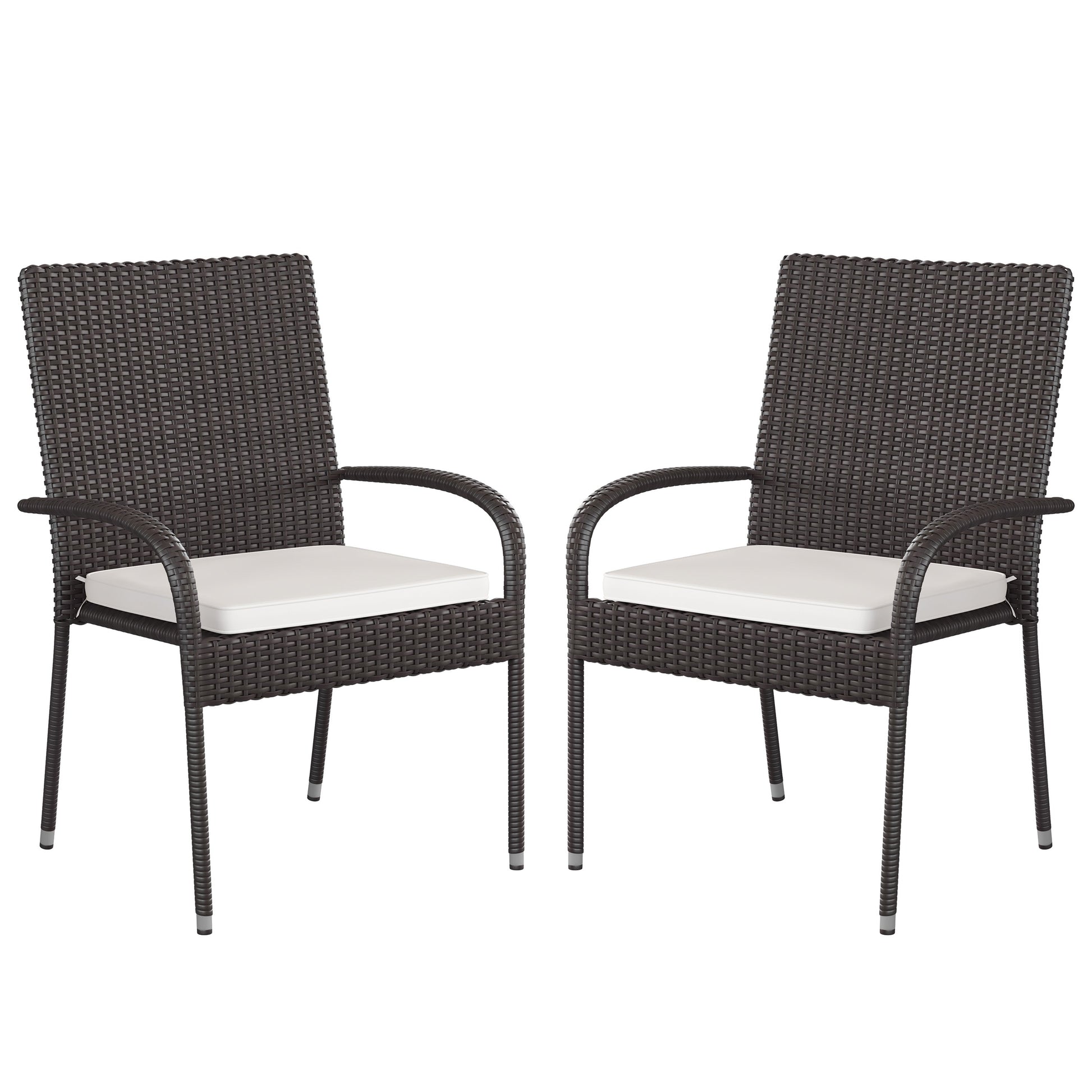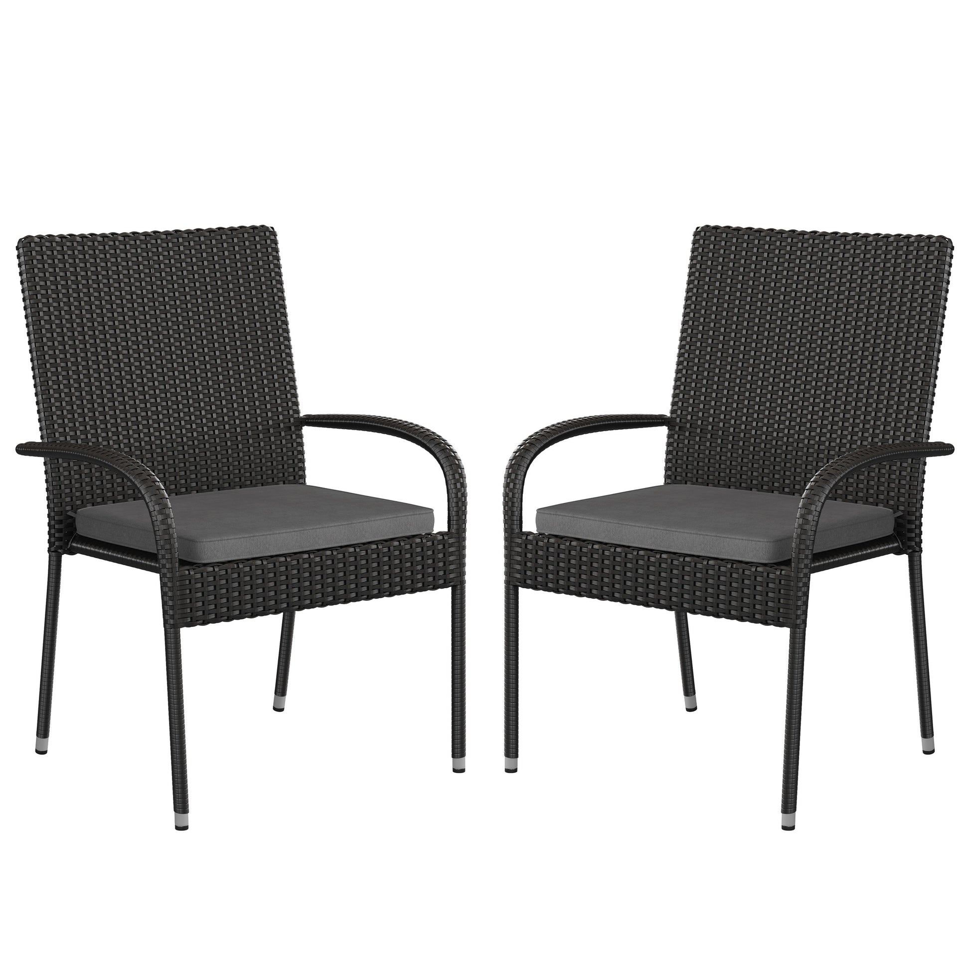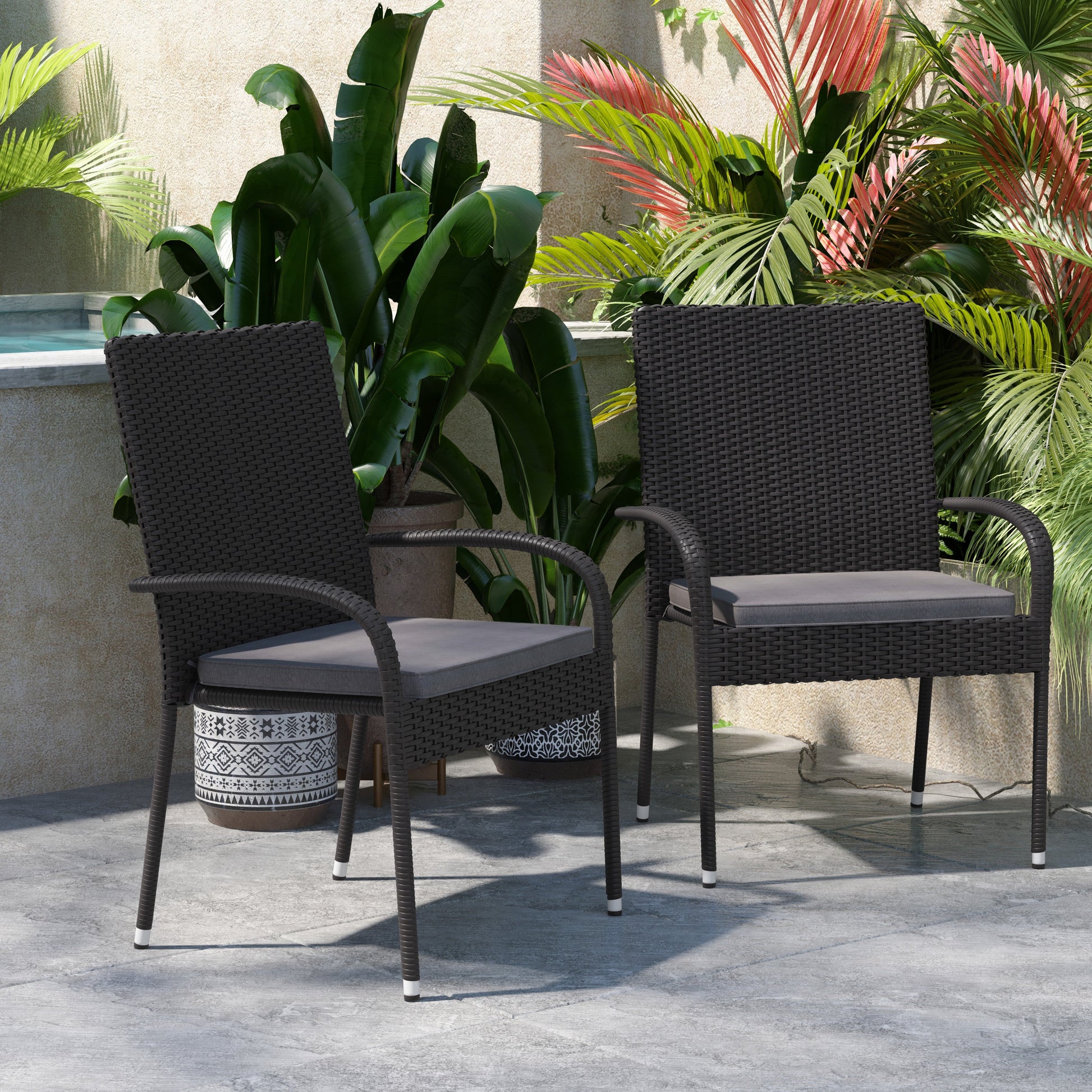 Contemporary Set of 2 Indoor/Outdoor PE Wicker Patio Chairs with Seat Cushions