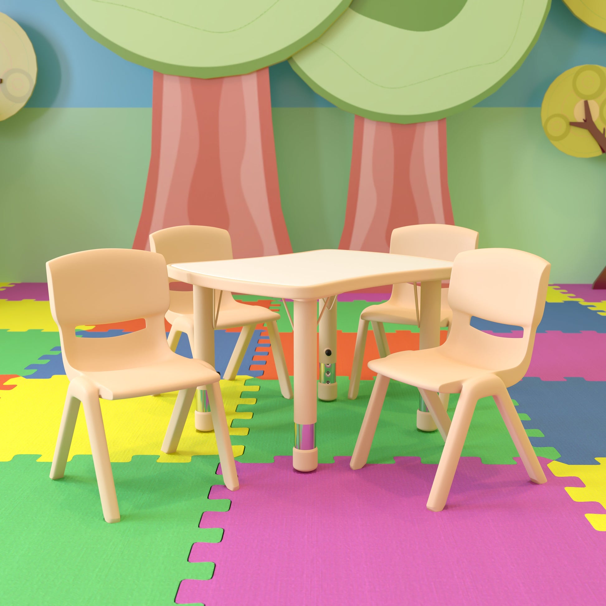 Emmy 21.875"W x 26.625"L Rectangular Natural Plastic Height Adjustable Activity Table Set with 4 Chairs Dimensions: 19.125" - 21.875"W x 26.625"D x 14.5" - 23.5"H