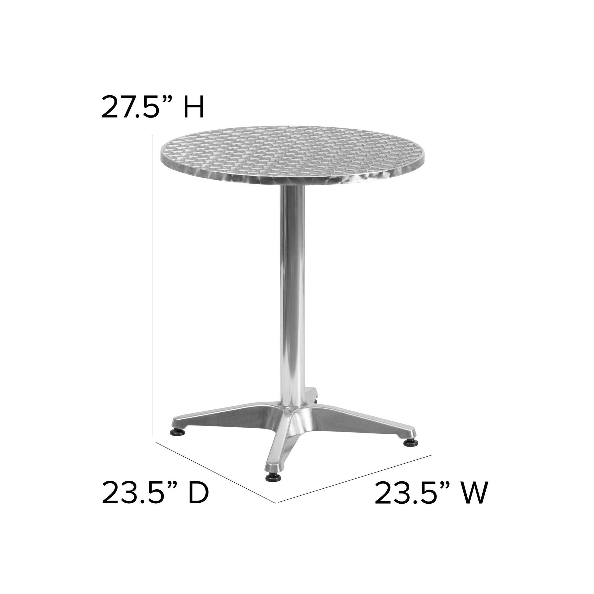 Mellie 23.5'' Round Aluminum Indoor-Outdoor Table with Base Dimensions: 23.5"W x 23.5"D x 27.5"H