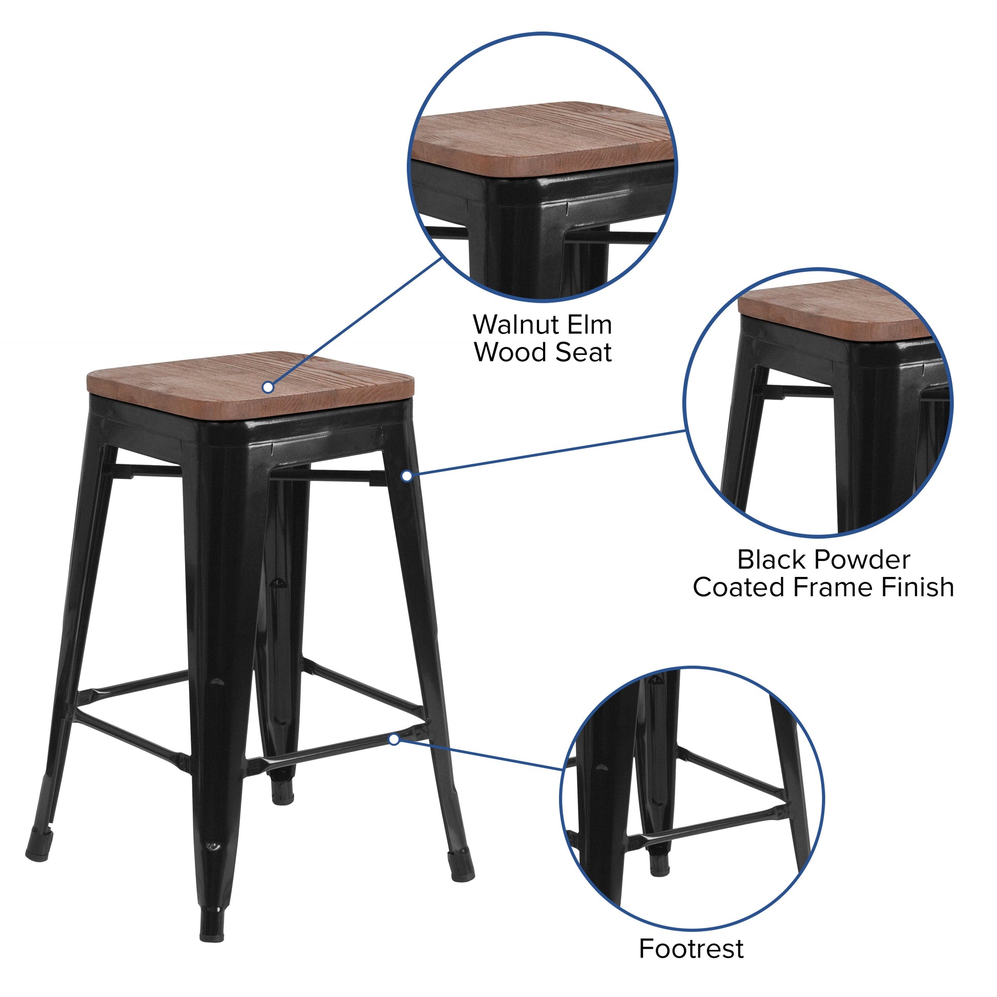 24" Black Backless Metal Stool CH-31320-24-BK-WD-GG