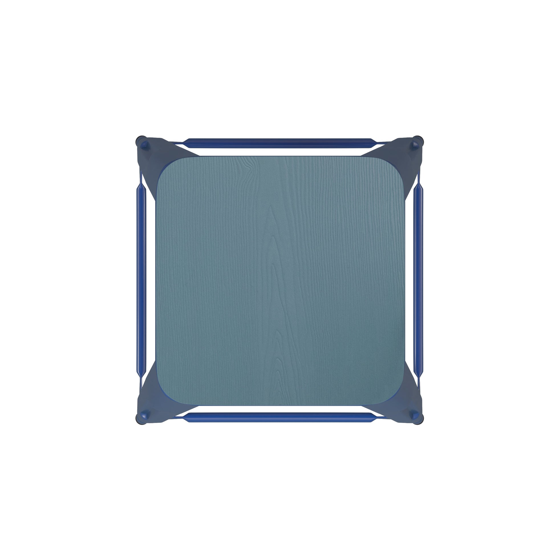 Kai Commercial Grade 24" High Backless Blue Metal Indoor-Outdoor Counter Height Stool with Teal-Blue Poly Resin Wood Seat Dimensions: 16"W x 16"D x 24.75"H