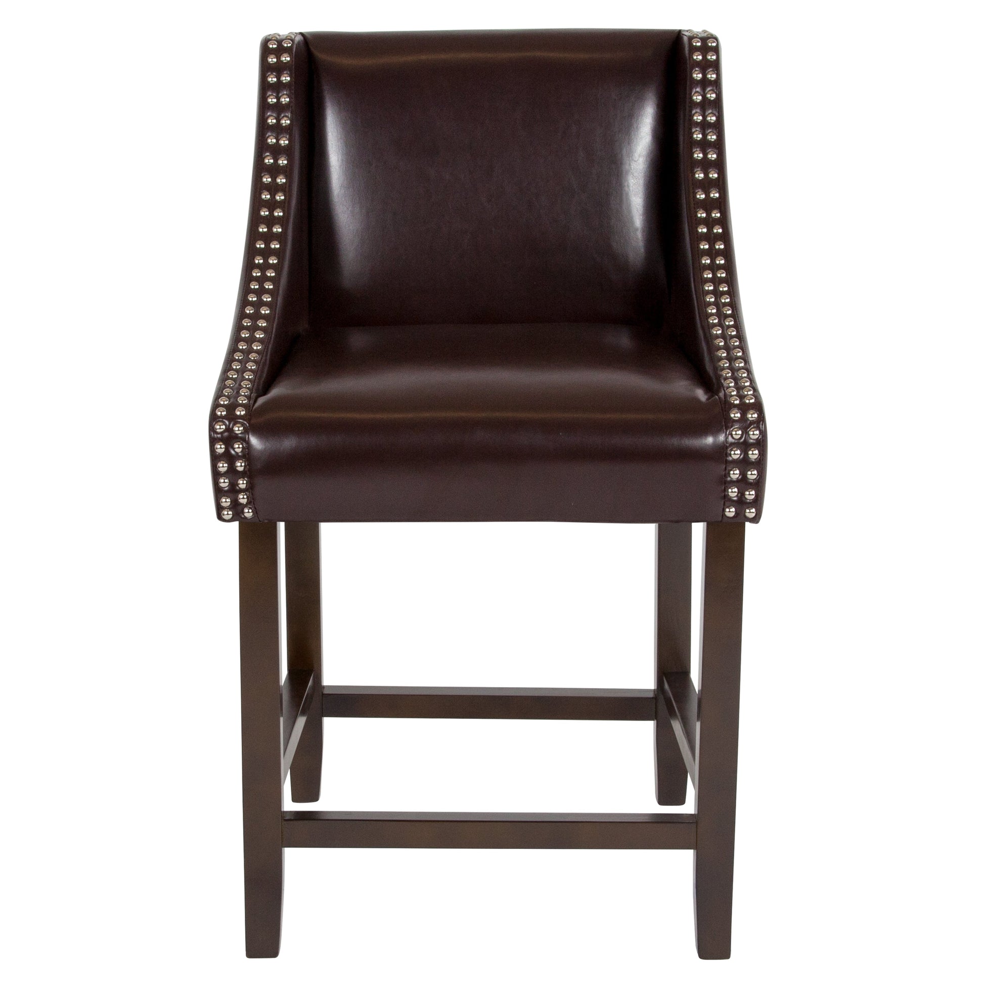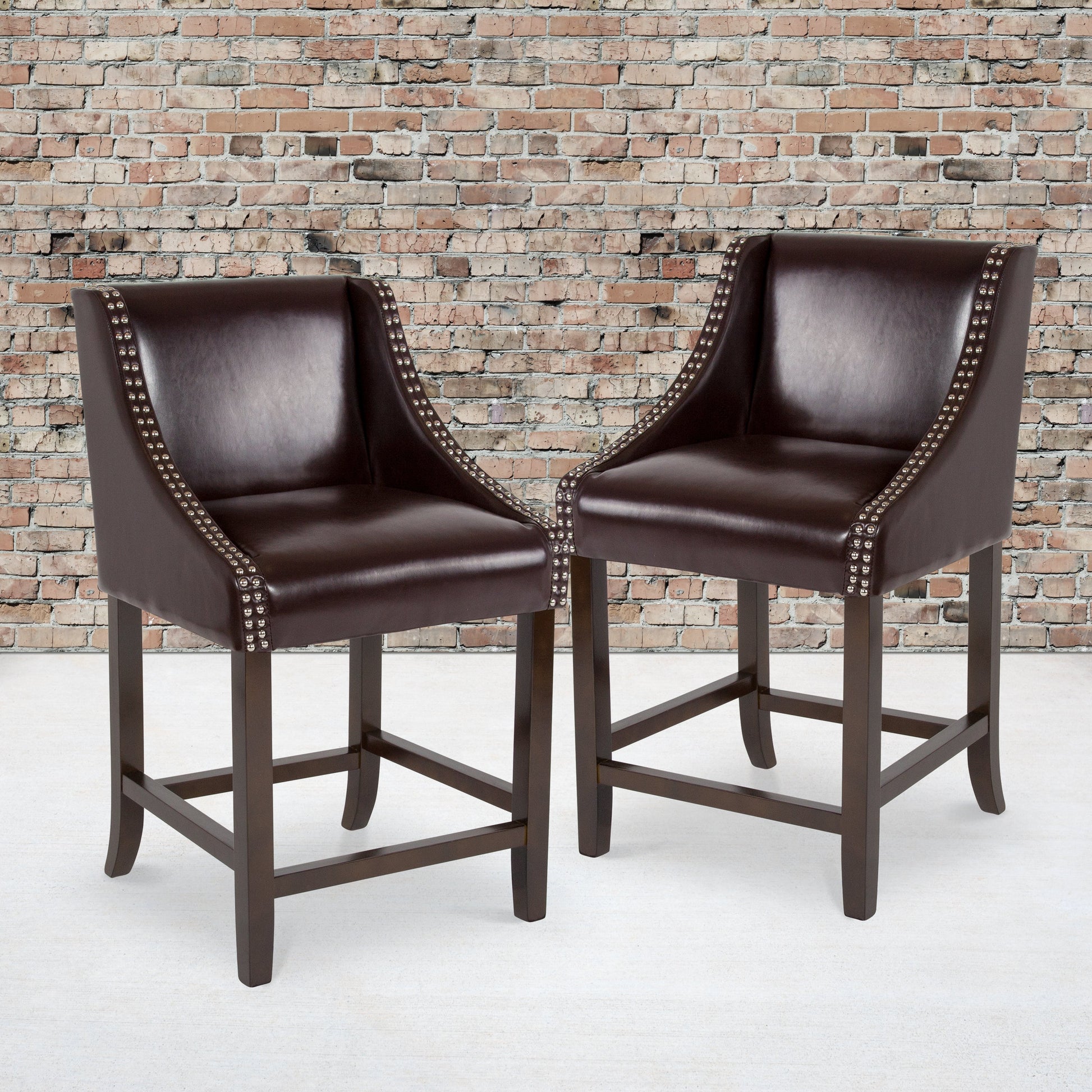 Carmel Series 24" High Transitional Walnut Counter Height Stool with Nail Trim in Brown LeatherSoft, Set of 2 Dimensions: 21"W x 19.5"D x 37"H