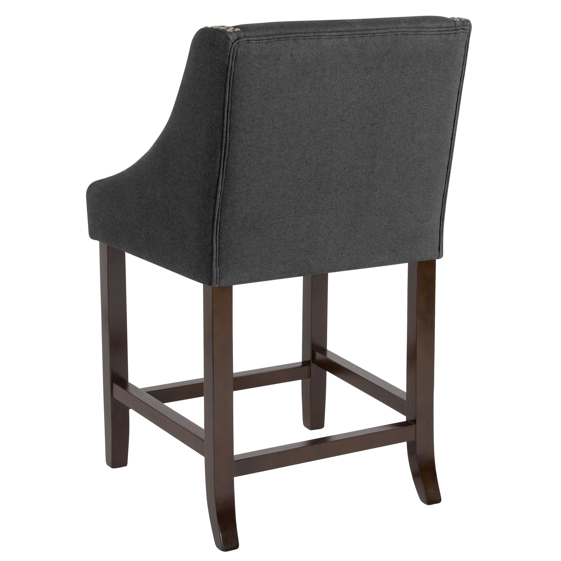 Carmel Series 24" High Transitional Walnut Counter Height Stool with Accent Nail Trim in Charcoal Fabric Dimensions: 21"W x 19.5"D x 37"H