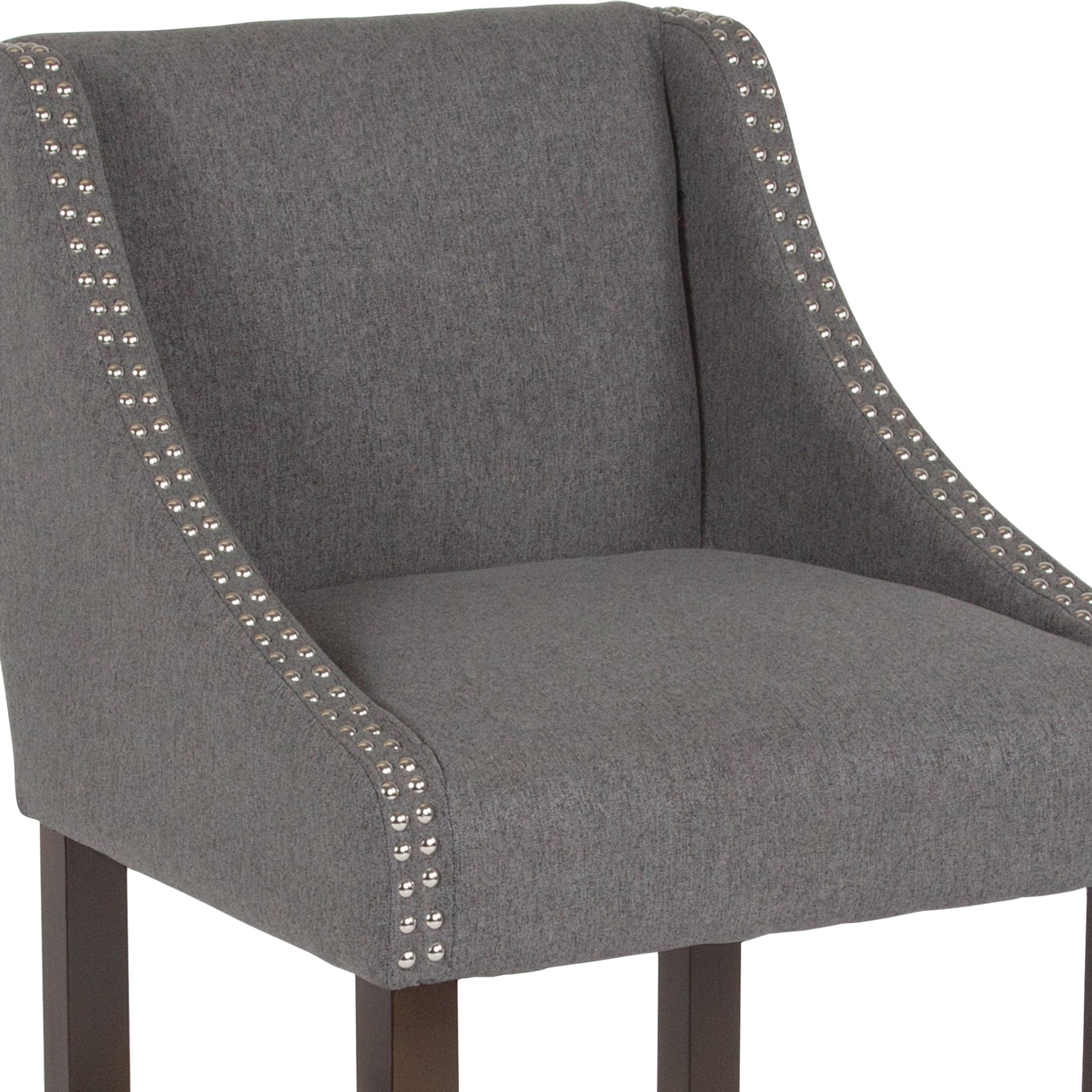 Carmel Series 24" High Transitional Walnut Counter Height Stool with Accent Nail Trim in Dark Gray Fabric Dimensions: 21"W x 19.5"D x 37"H