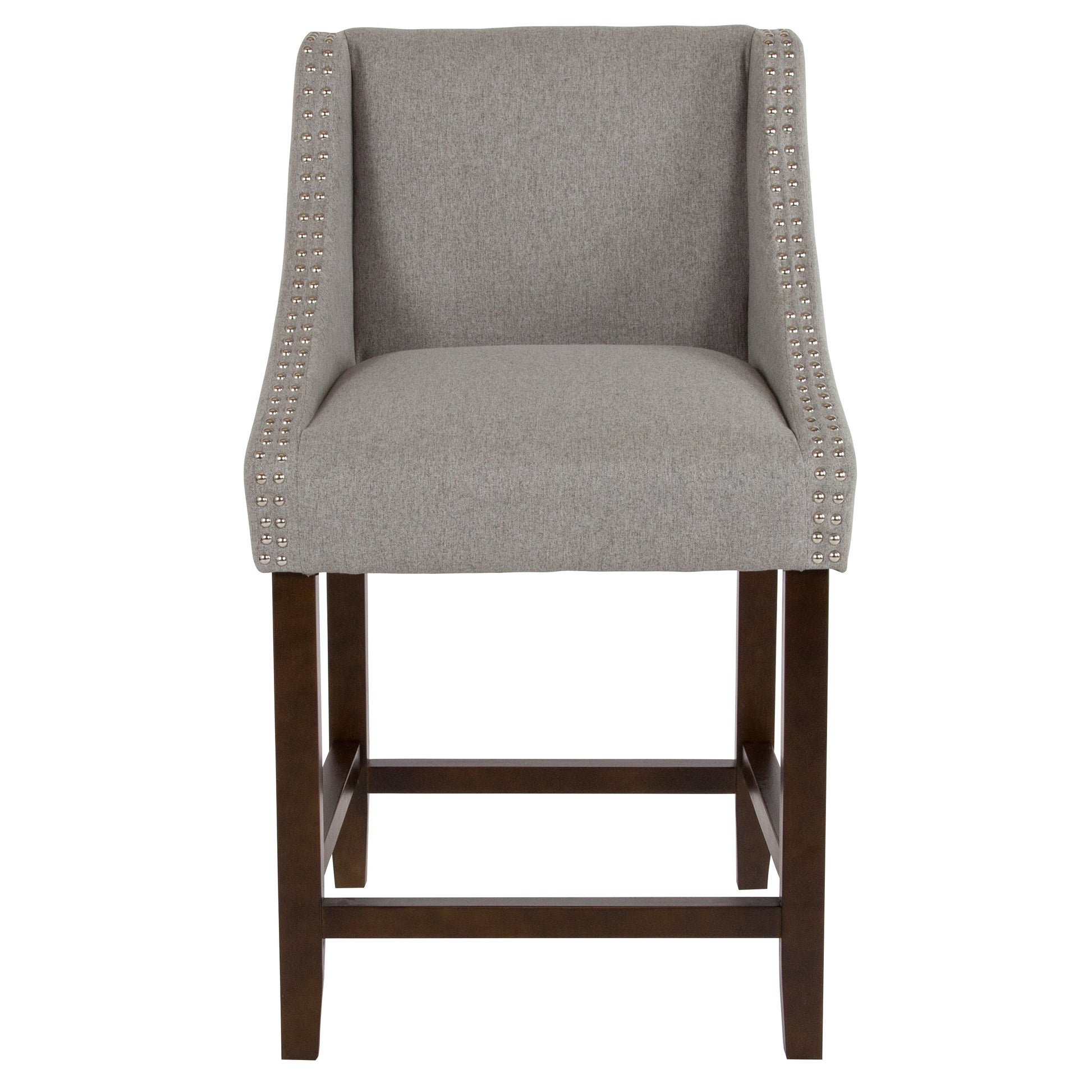 Carmel Series 24" High Transitional Walnut Counter Height Stool with Accent Nail Trim in Light Gray Fabric Dimensions: 21"W x 19.5"D x 37"H
