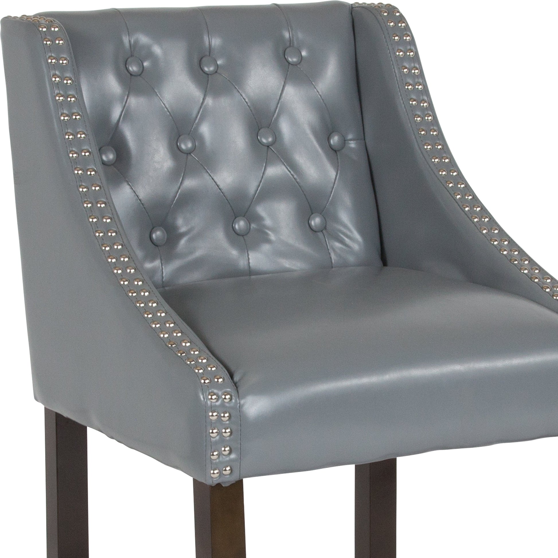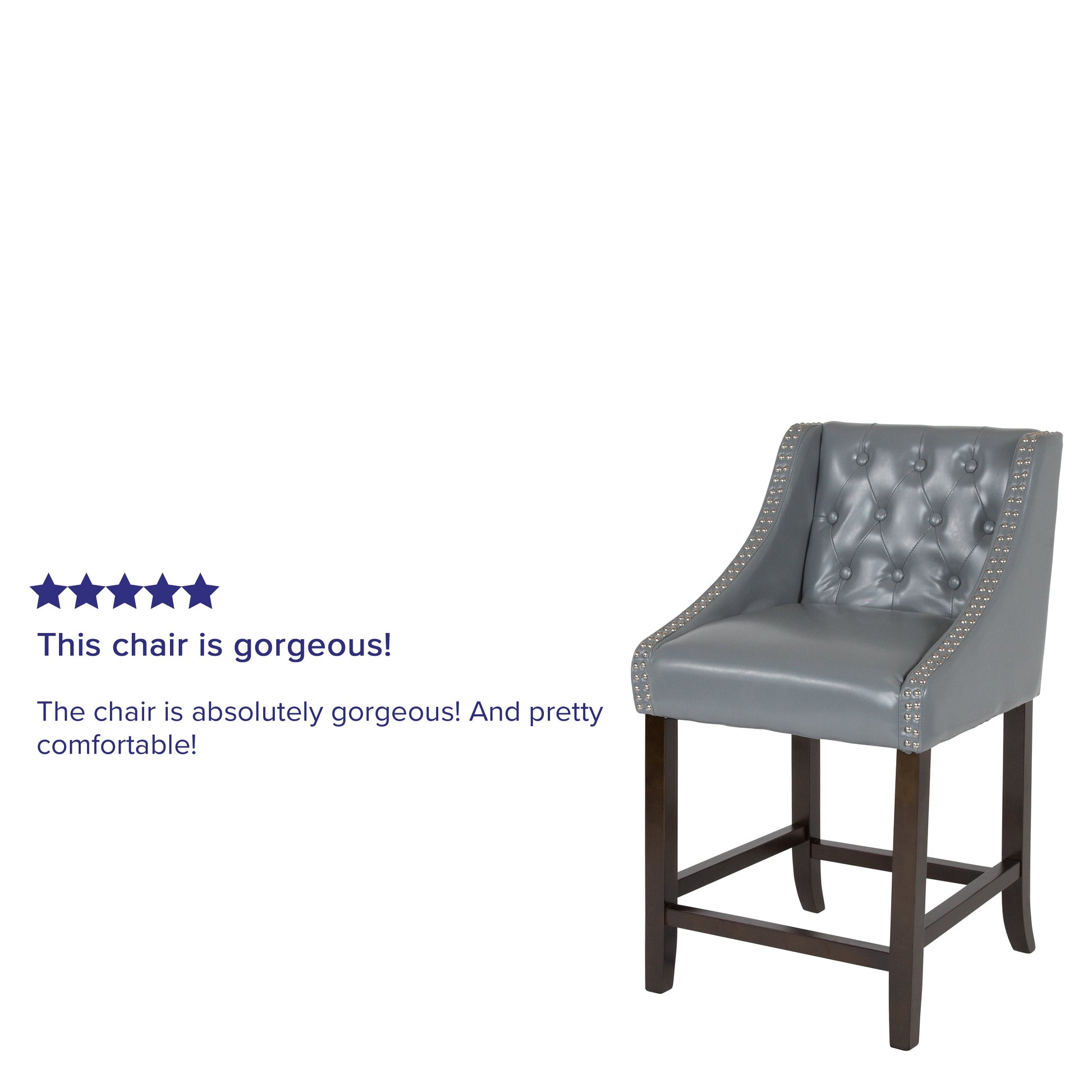 Carmel Series 24" High Transitional Tufted Walnut Counter Height Stool with Accent Nail Trim in Light Gray LeatherSoft Dimensions: 20"W x 22"D x 36"H