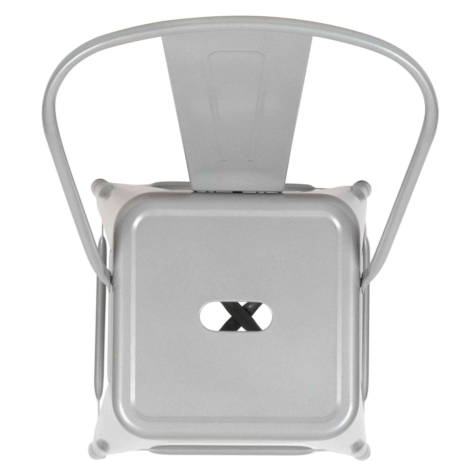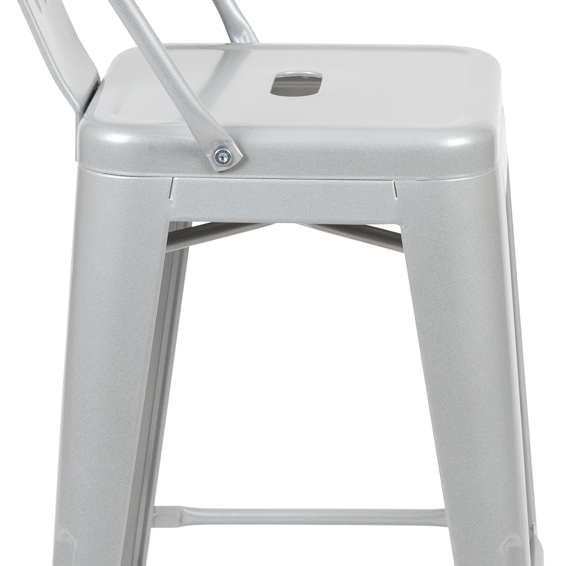 Kai Commercial Grade 24" High Silver Metal Indoor-Outdoor Counter Height Stool with Removable Back Dimensions: 17.75"W x 20"D x 39.25"H