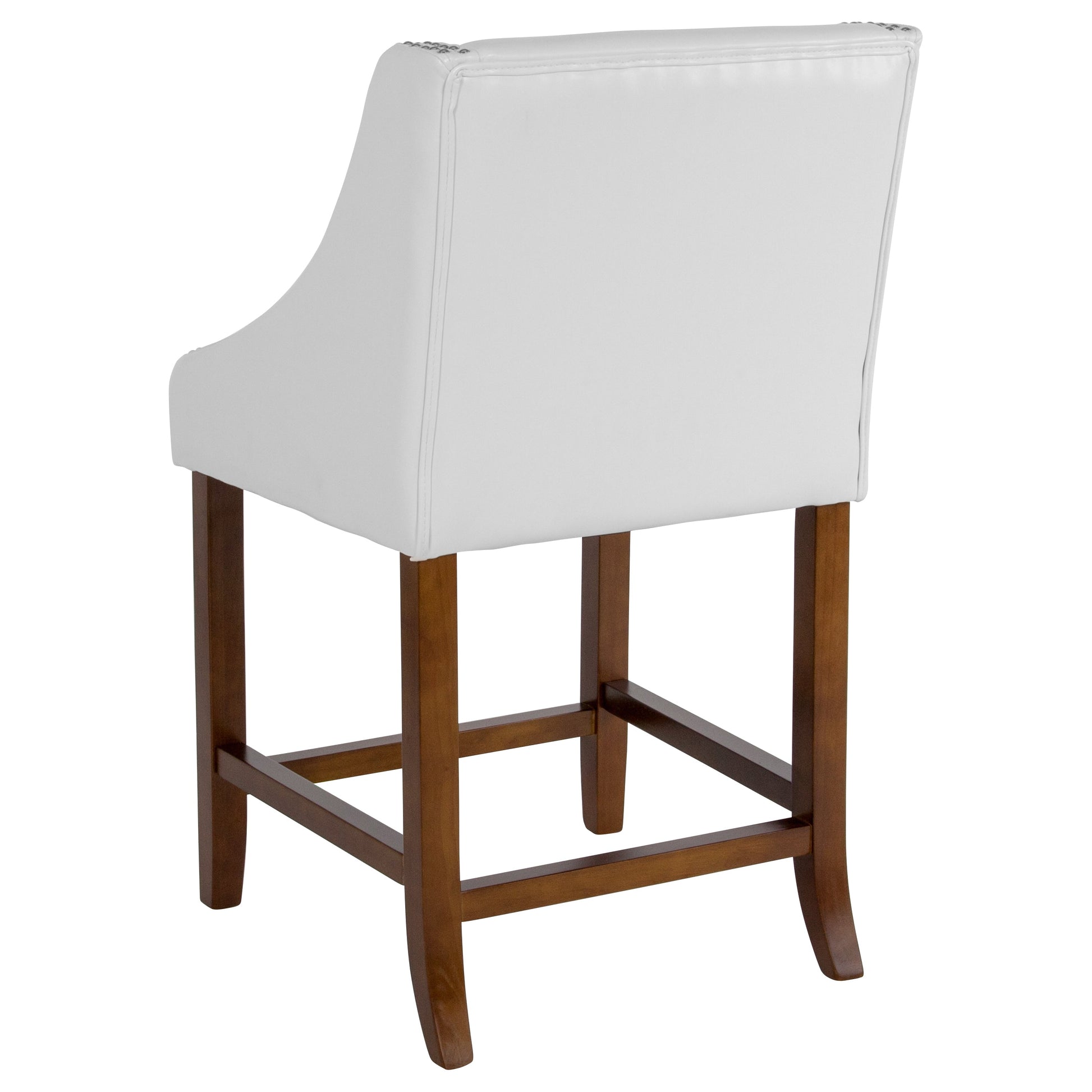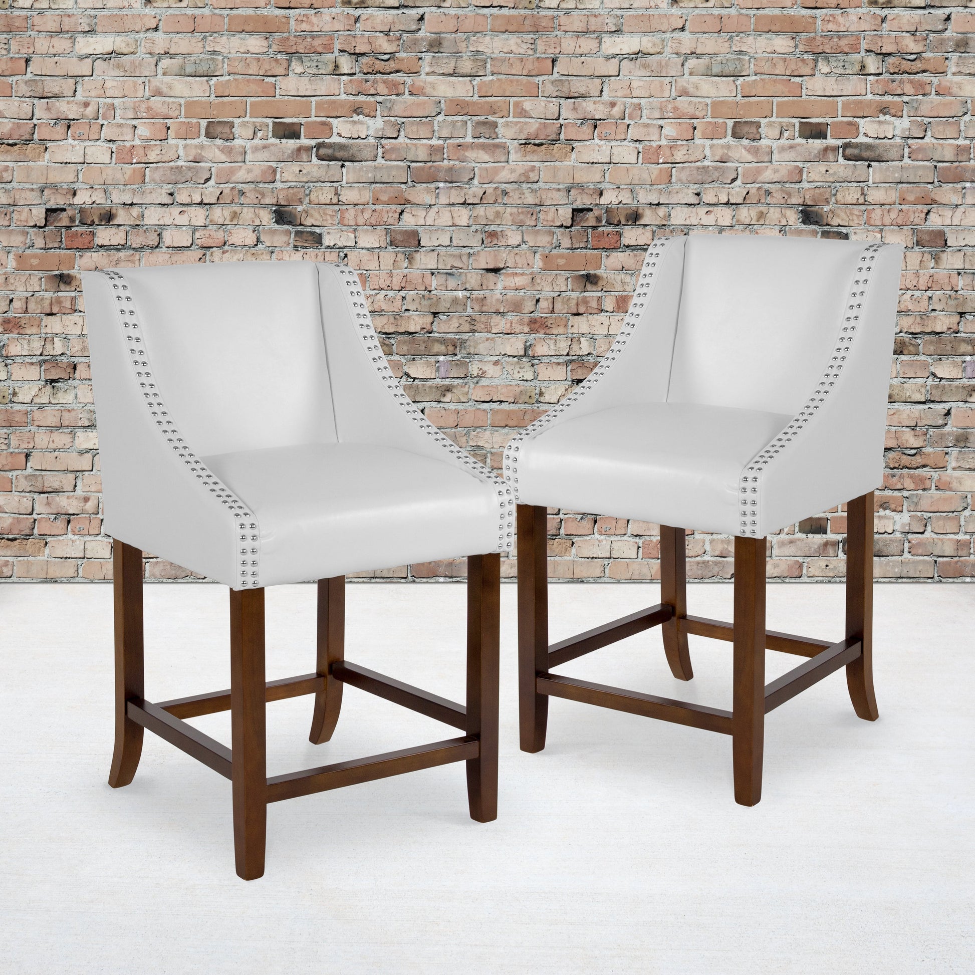 Carmel Series 24" High Transitional Walnut Counter Height Stool with Nail Trim in White LeatherSoft, Set of 2 Dimensions: 21"W x 19.5"D x 37"H