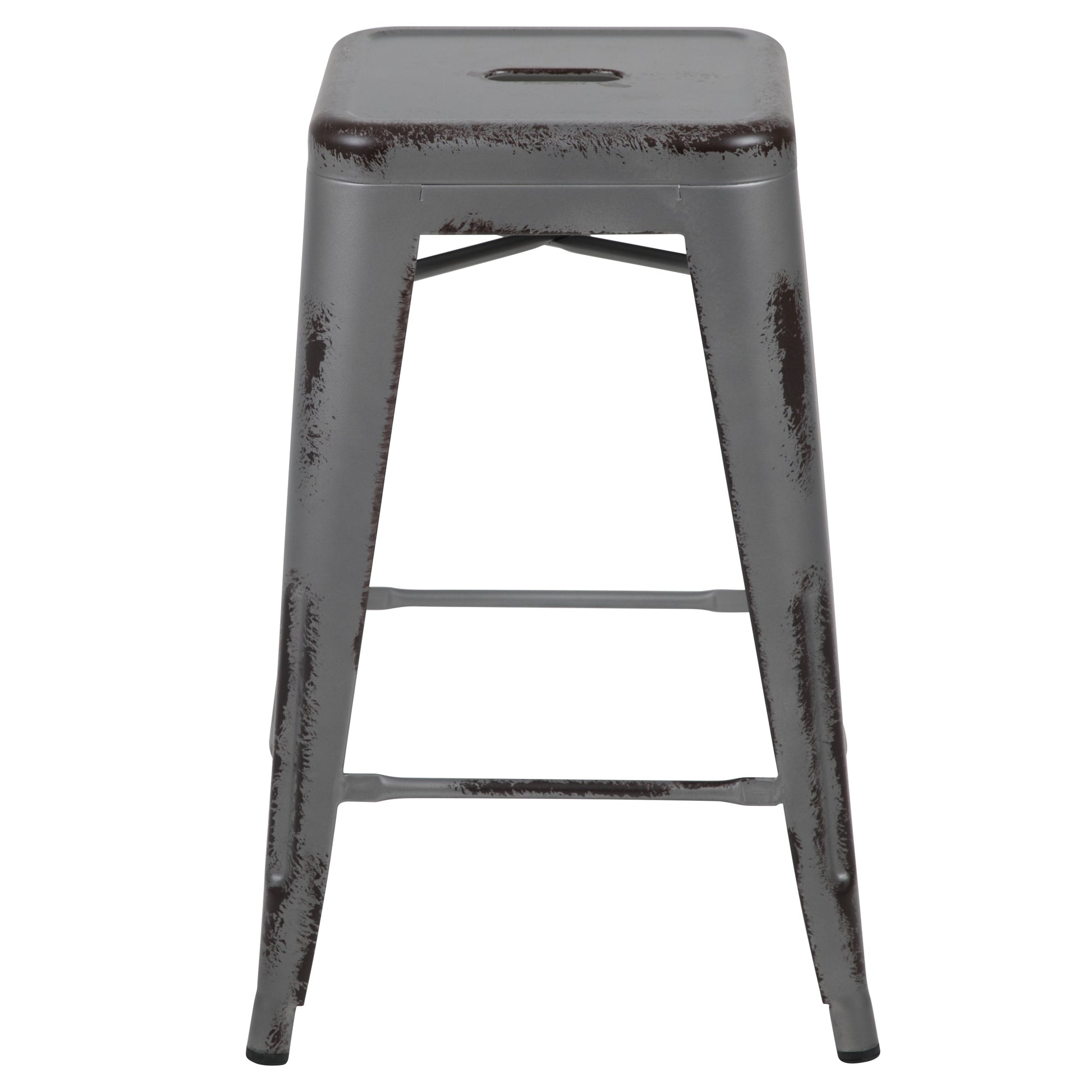 Kai Commercial Grade 24" High Backless Distressed Silver Gray Metal Indoor-Outdoor Counter Height Stool Dimensions: 16"W x 16"D x 24"H
