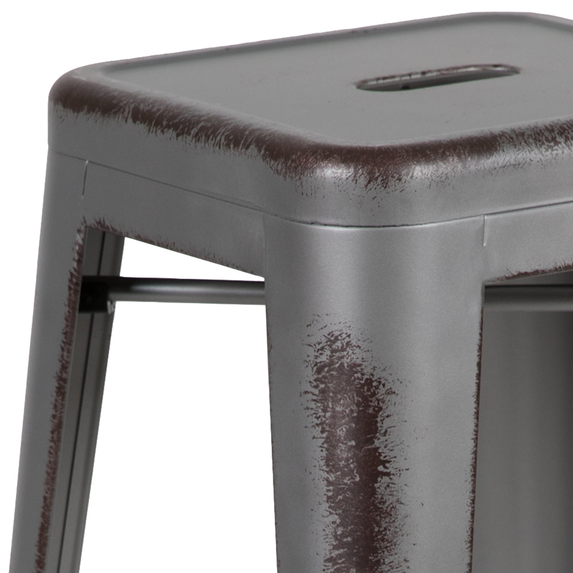 24"H Distressed Silver Stool ET-BT3503-24-SIL-GG