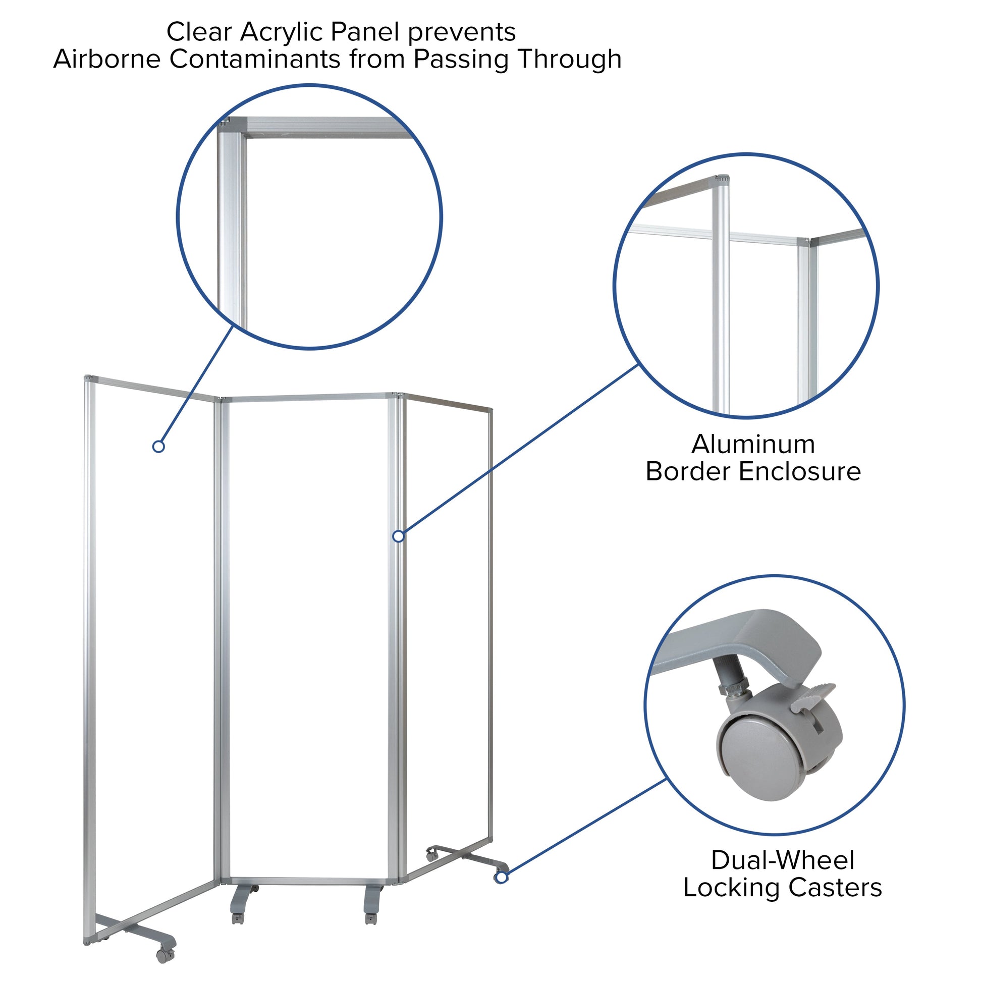 24"L Clear Mobile Partition BR-PTT001-3-AC-60183-GG
