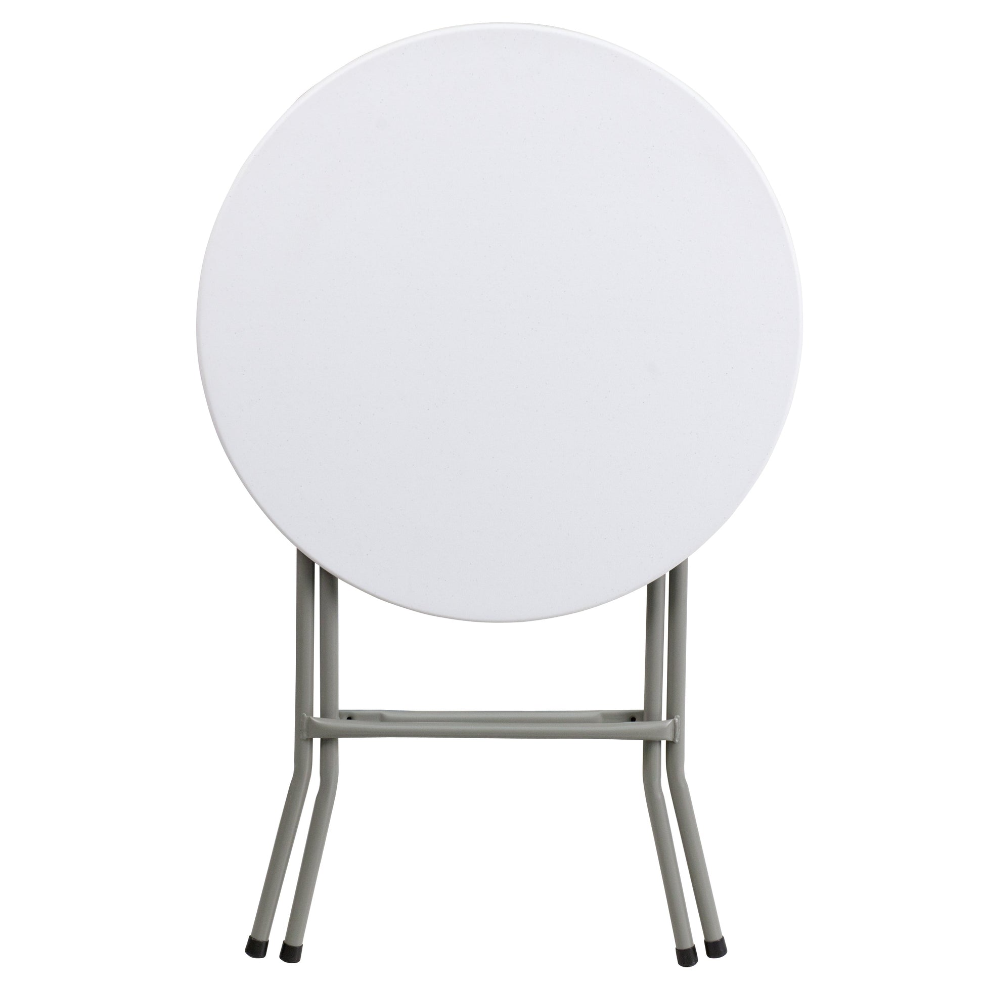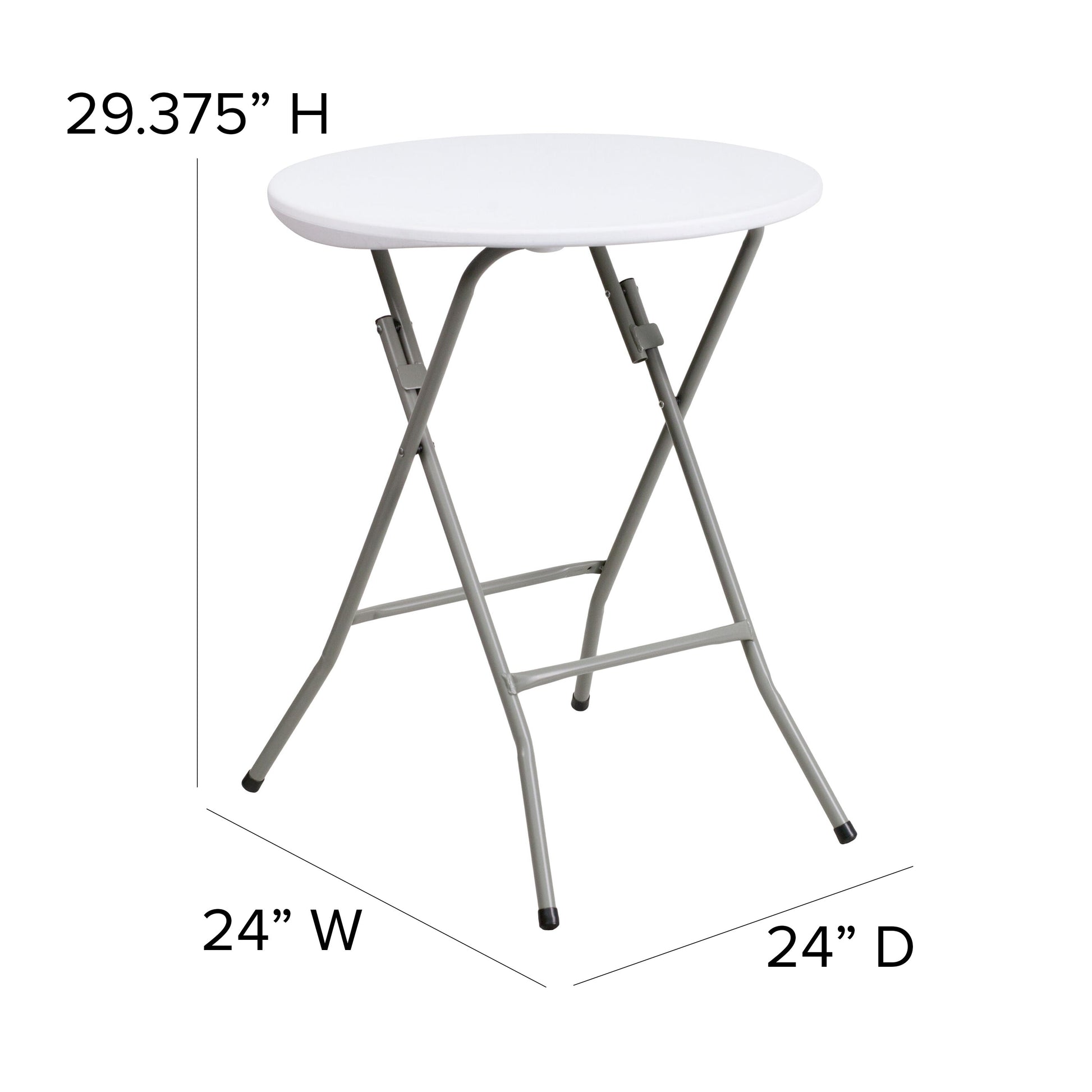 Elon 2-Foot Round Granite White Plastic Folding Table Dimensions: 24"W x 24"D x 29.375"H