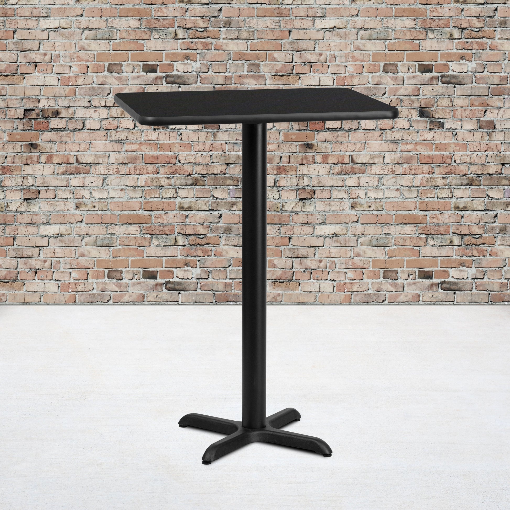 Stiles 24'' x 30'' Rectangular Black Laminate Table Top with 22'' x 22'' Bar Height Table Base Dimensions: 24"W x 30"D x 43.125"H