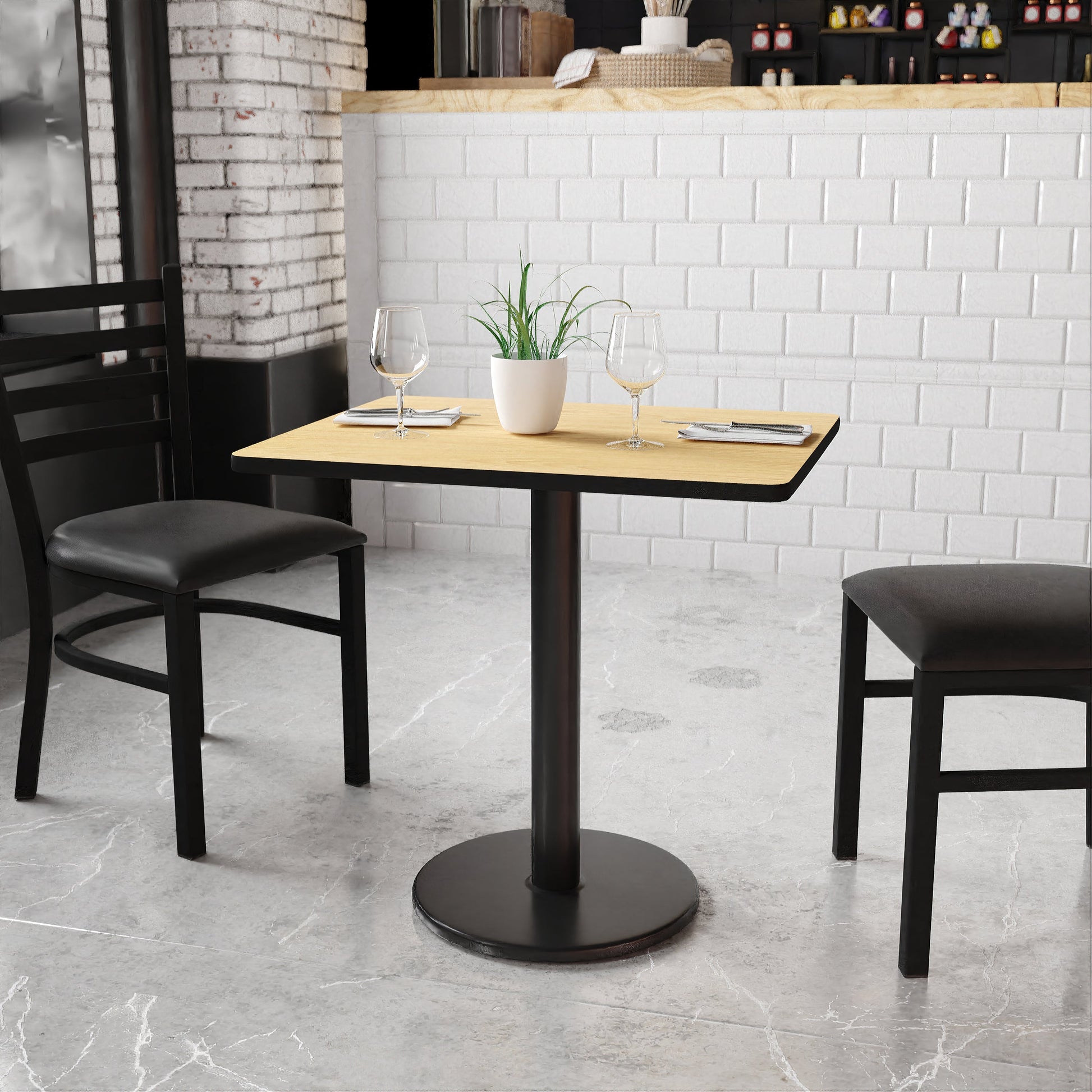 Graniss 24'' x 30'' Rectangular Natural Laminate Table Top with 18'' Round Table Height Base Dimensions: 24"W x 30"D x 31.125"H