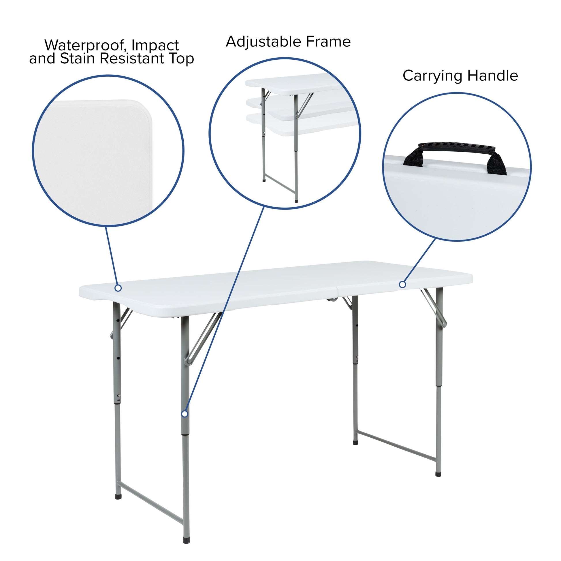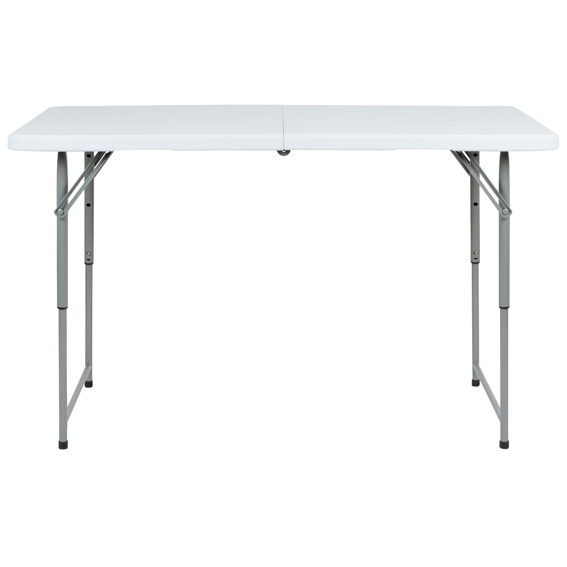 Kathryn 4-Foot Height Adjustable Bi-Fold Granite White Plastic Folding Table Dimensions: 23.75"W x 47.5"D x 19" - 29"H
