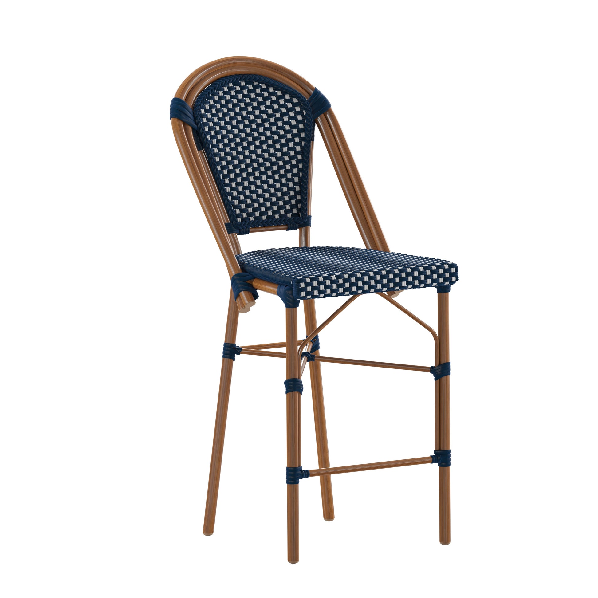 Bordeaux Stackable Indoor/Outdoor French Bistro 26" High Counter Height Stool, Commercial Grade, Navy/White and Bamboo Finish Dimensions: 18.5"W x 21.75"D x 41.5"H