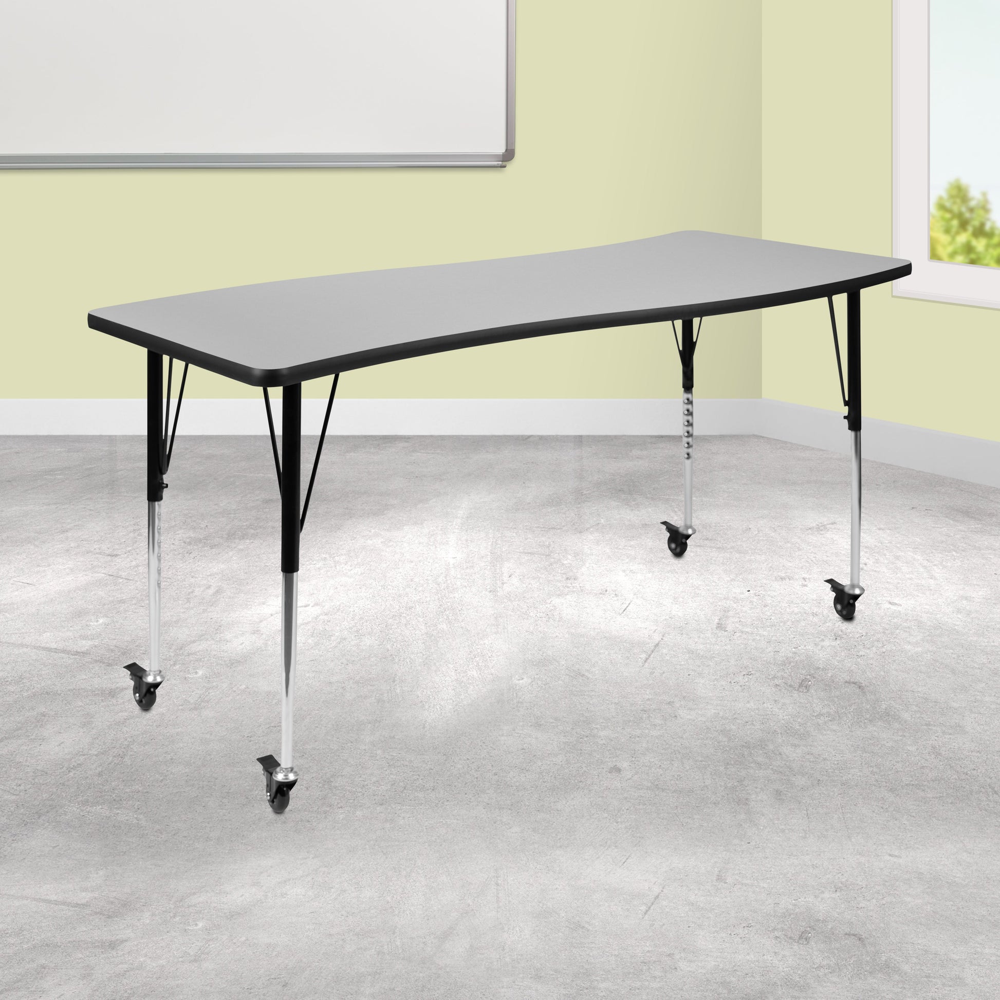 Wren Mobile 26"W x 60"L Rectangle Wave Flexible Collaborative Grey Laminate Activity Table - Standard Height Adjust Legs Dimensions: 26"W x 60"D x 22" - 30"H