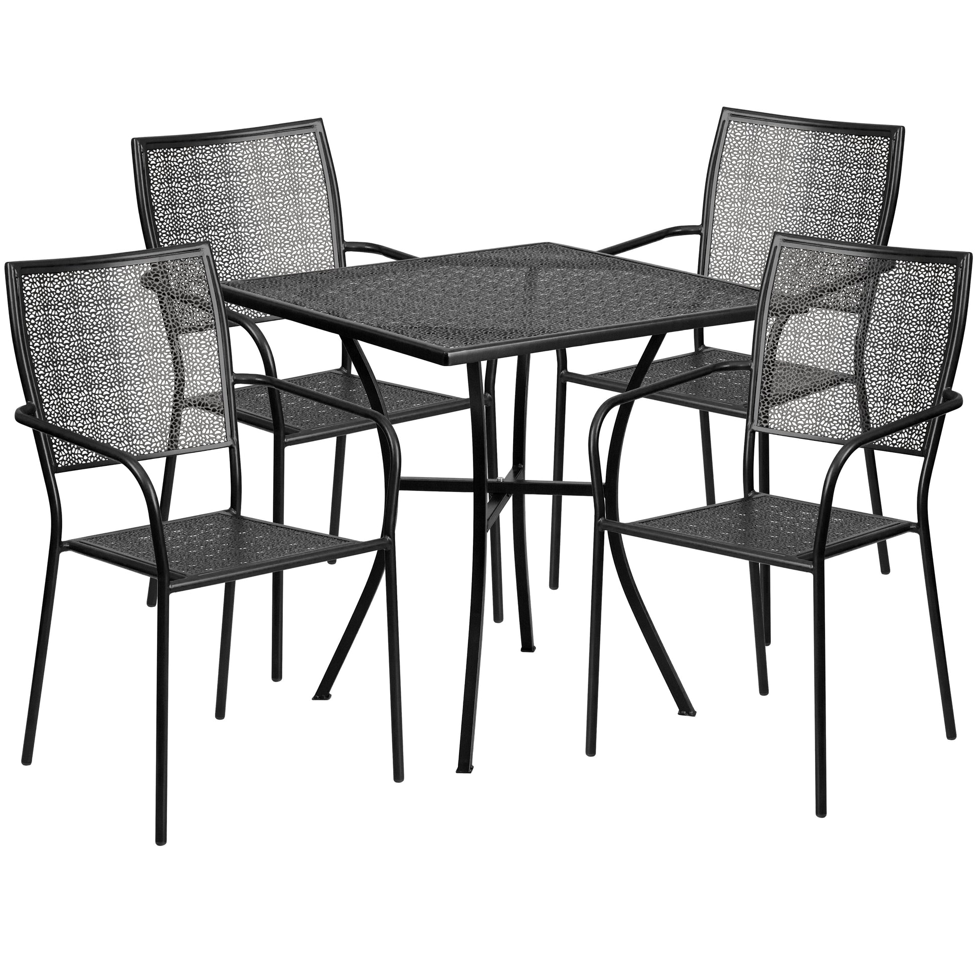 Oia Commercial Grade 28" Square Black Indoor-Outdoor Steel Patio Table Set with 4 Square Back Chairs Dimensions: 28"W x 28"D x 28.25"H