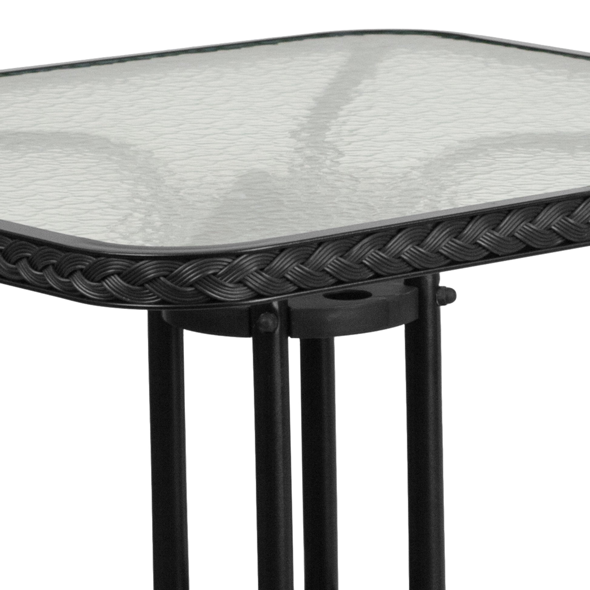 Barker 28'' Square Tempered Glass Metal Table with Black Rattan Edging Dimensions: 28"W x 28"D x 28"H