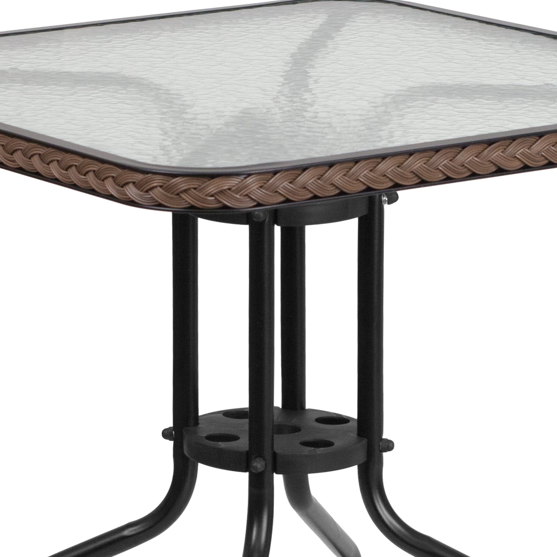 28SQ Brown Table Set w/Rattan TLH-073SQ-037BN4-GG