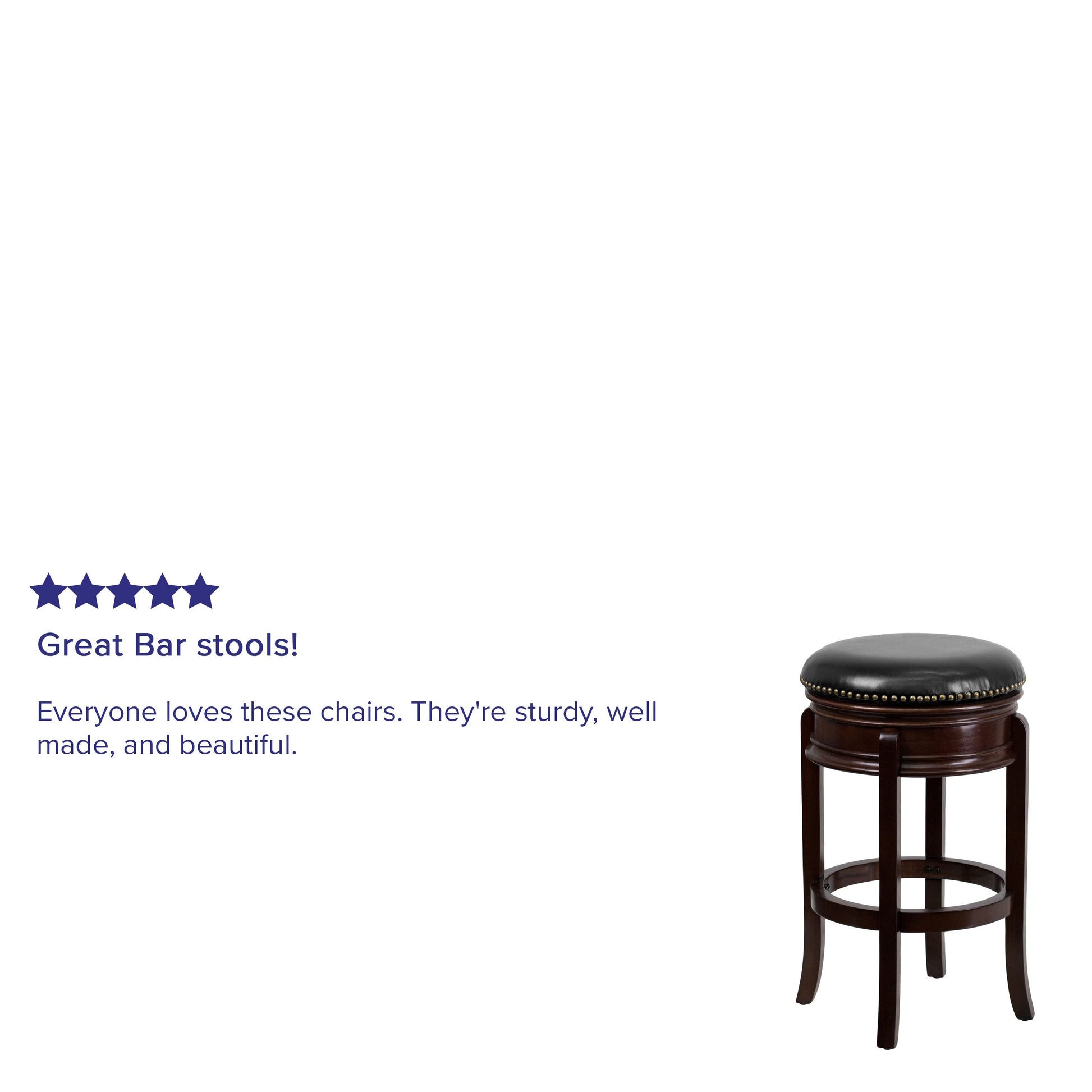 Carol 29'' High Backless Cappuccino Wood Barstool with Carved Apron and Black LeatherSoft Swivel Seat Dimensions: 17"W x 17"D x 30"H