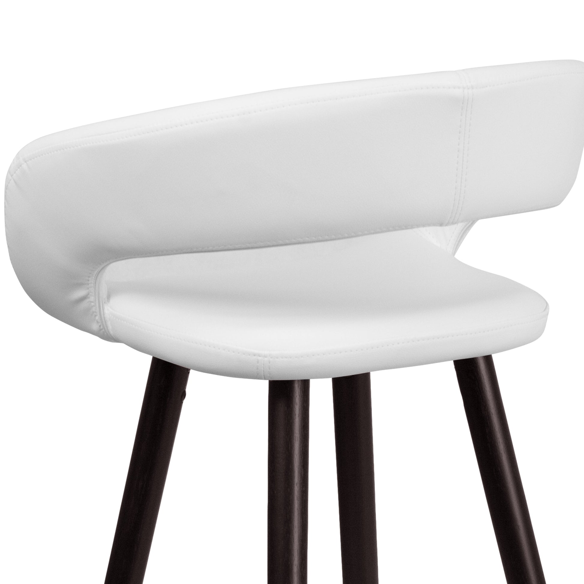 Brynn Series 29'' High Contemporary Cappuccino Wood Barstool in White Vinyl Dimensions: 22"W x 19"D x 39"H