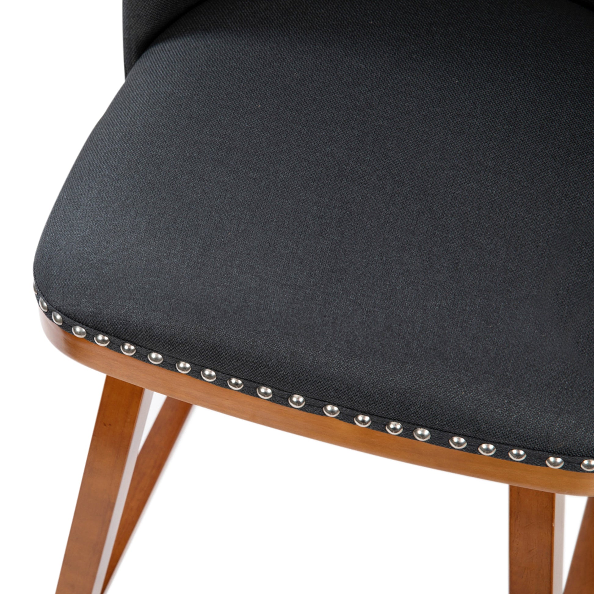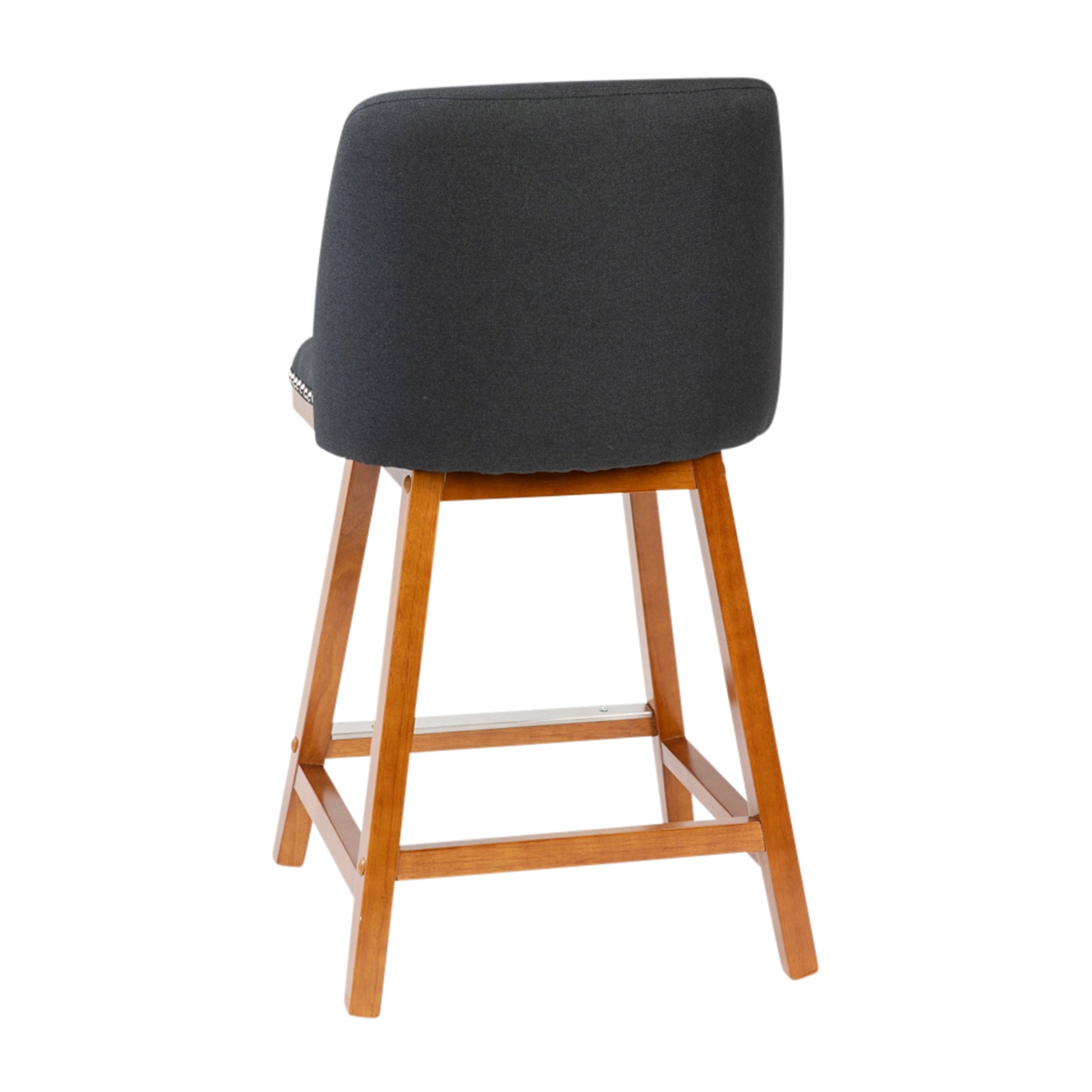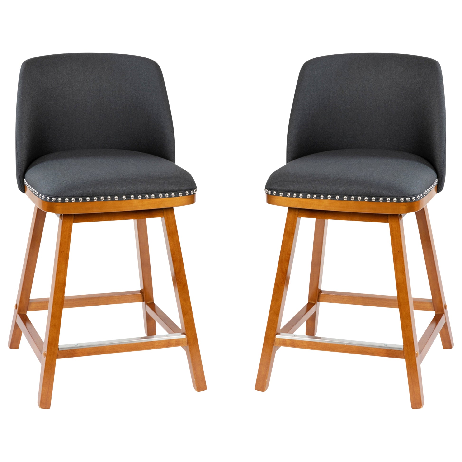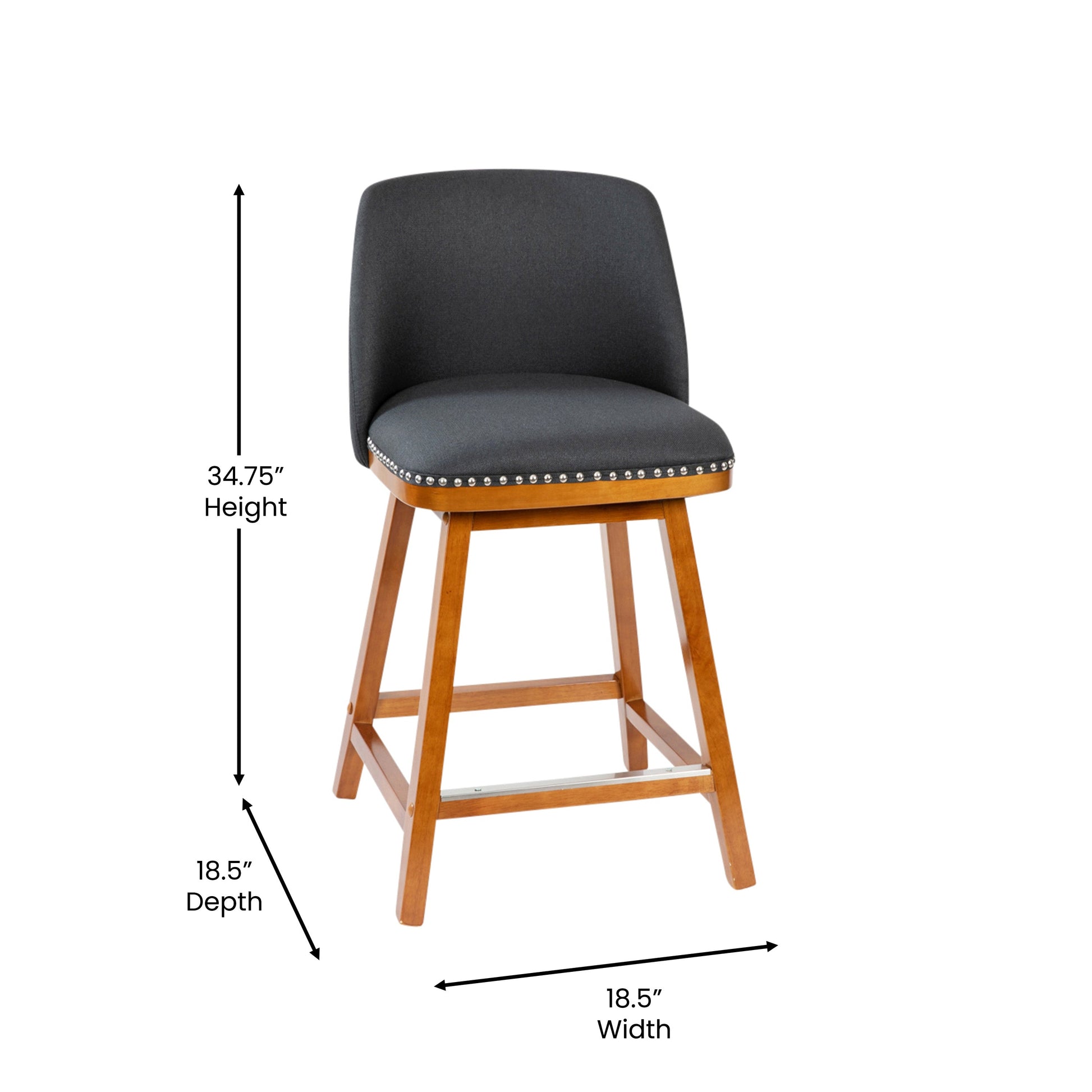 Julia Set of 2 Transitional 24 Inch Faux Linen Upholstered Counter Stools with Silver Nailhead Trim and Walnut Finish Solid Wood Frames, Charcoal Dimensions: 18.5"W x 18.5"D x 34.75"H