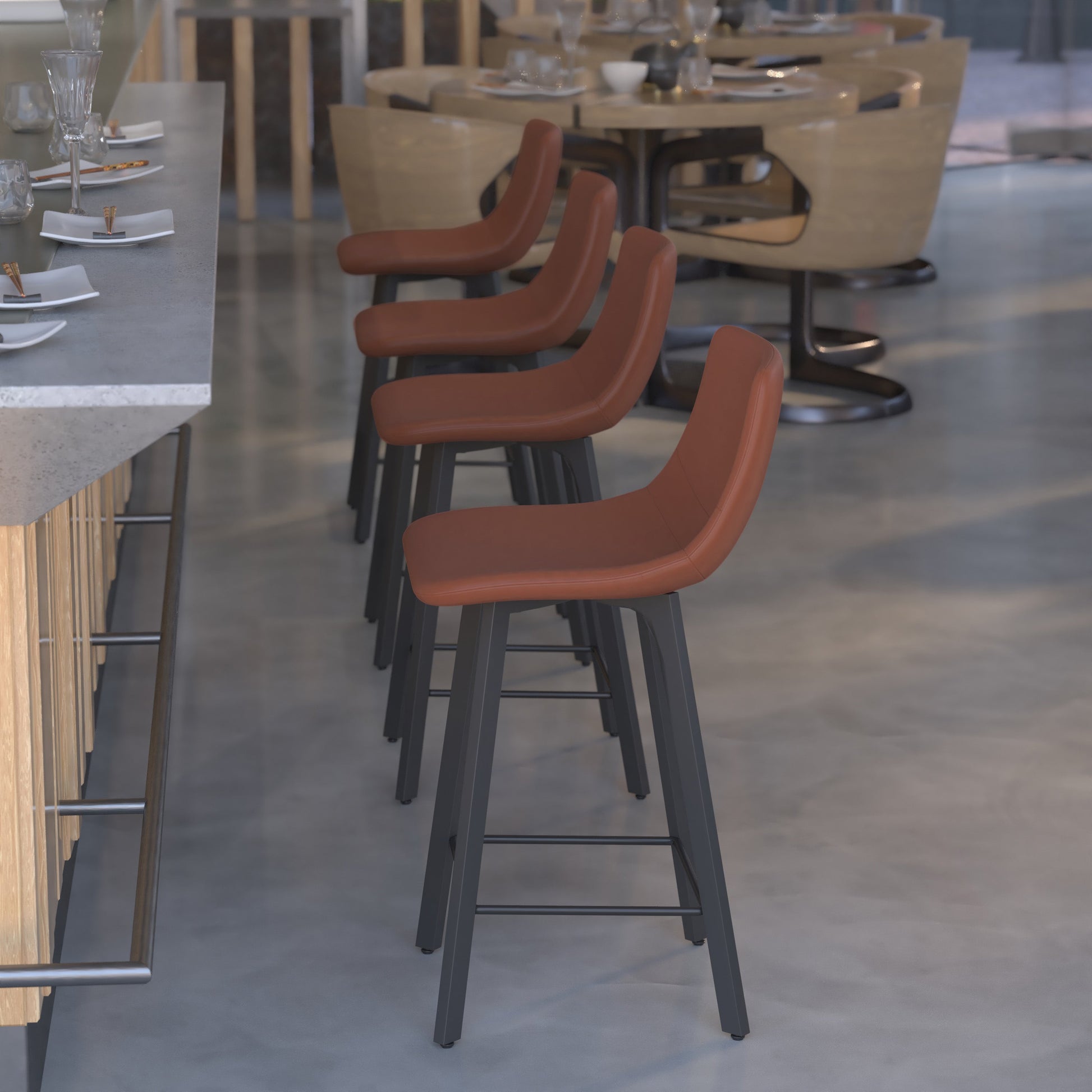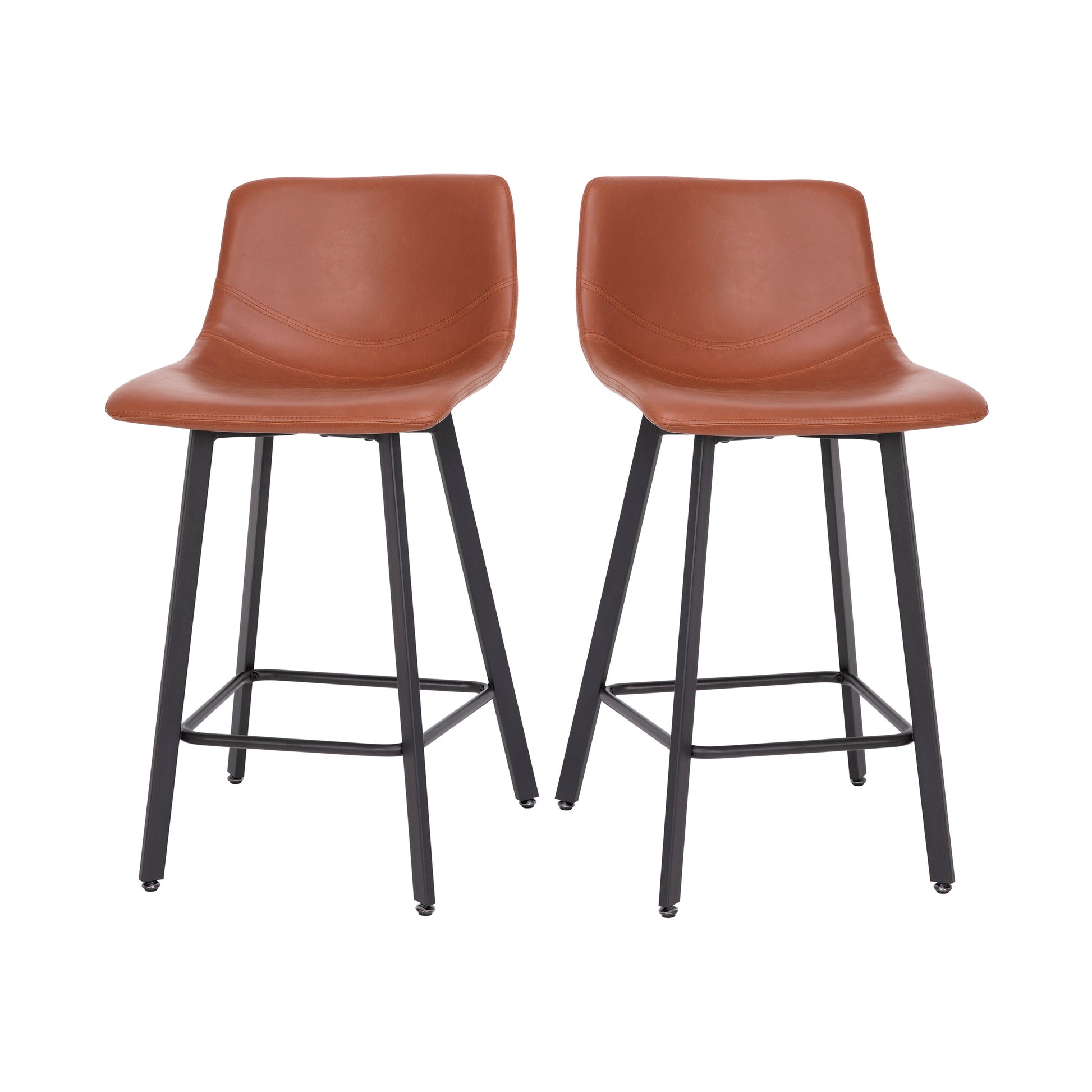 Caleb Modern Armless 24 Inch Counter Height Stools Commercial Grade with Footrests in Cognac LeatherSoft and Black Matte Metal Frames, Set of 2 Dimensions: 17.5"W x 20"D x 32.5"H