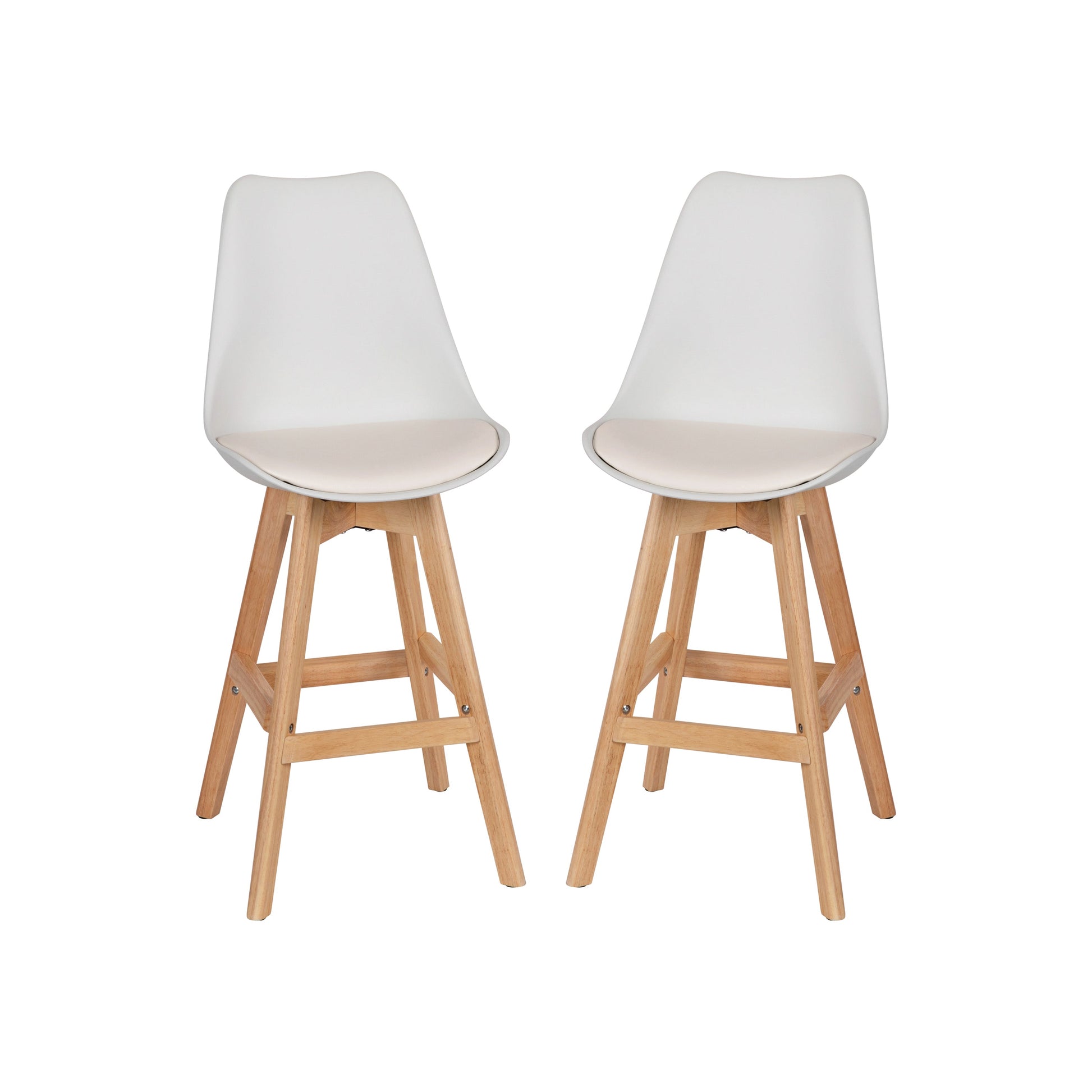 Dana Set of 2 Modern Commercial Counter Stools - White Plastic Backrest - LeatherSoft Padded Seat - 27 Inch Counter Stools - Oak Finish Wood Frame Dimensions: 19"W x 21"D x 41.5"H