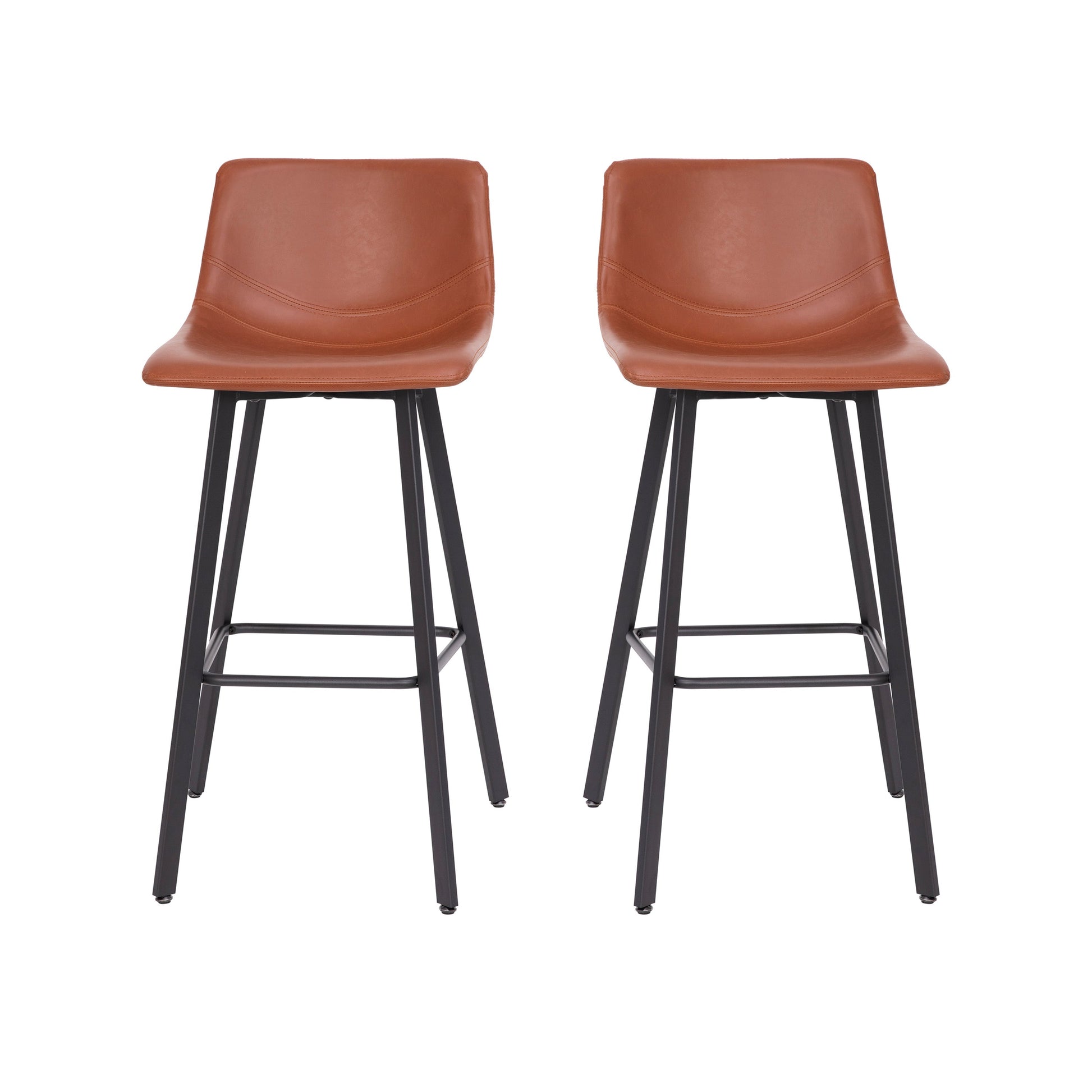 Caleb Modern Armless 30 Inch Bar Height Commercial Grade Barstools with Footrests in Cognac LeatherSoft and Black Matte Iron Frames, Set of 2 Dimensions: 19"W x 20"D x 36.75"H