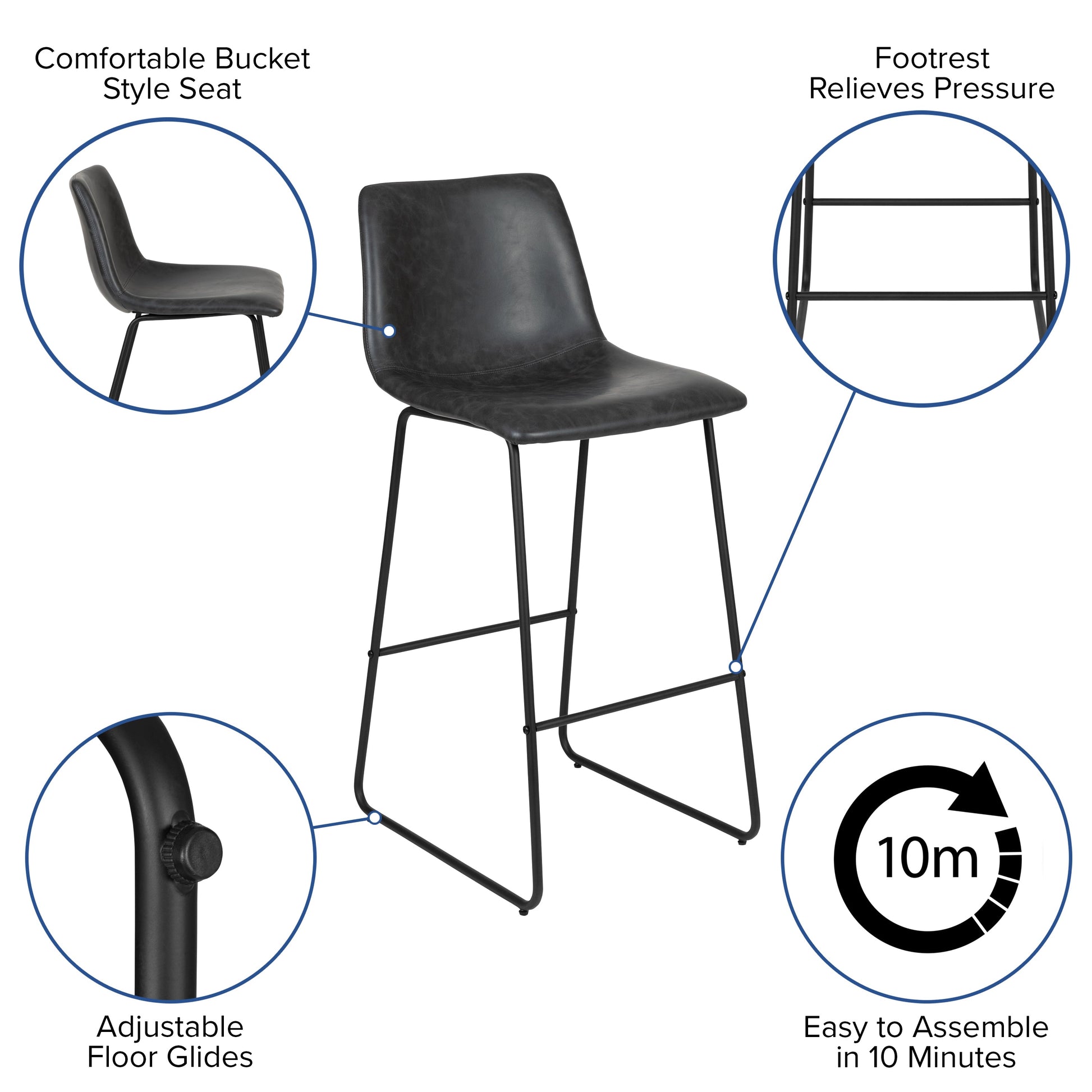 Reagan 30 Inch Commercial Grade LeatherSoft Bar Height Barstools in Dark Gray, Set of 2 Dimensions: 18"W x 22"D x 42"H