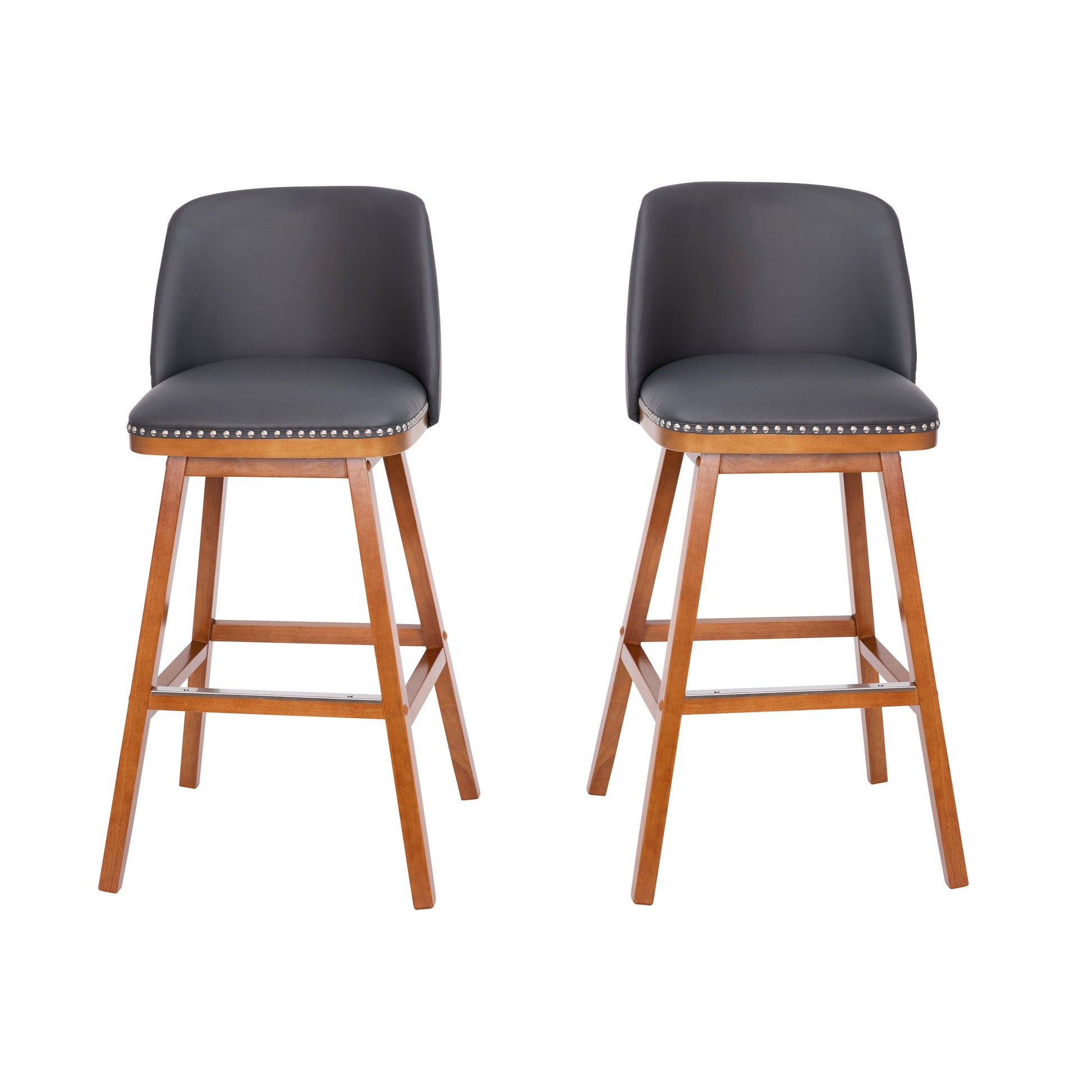 Julia Set of 2 Transitional 30 Inch LeatherSoft Upholstered Barstools with Silver Nailhead Trim and Walnut Finish Solid Wood Frames, Gray Dimensions: 20.5"W x 20.5"D x 40.75"H