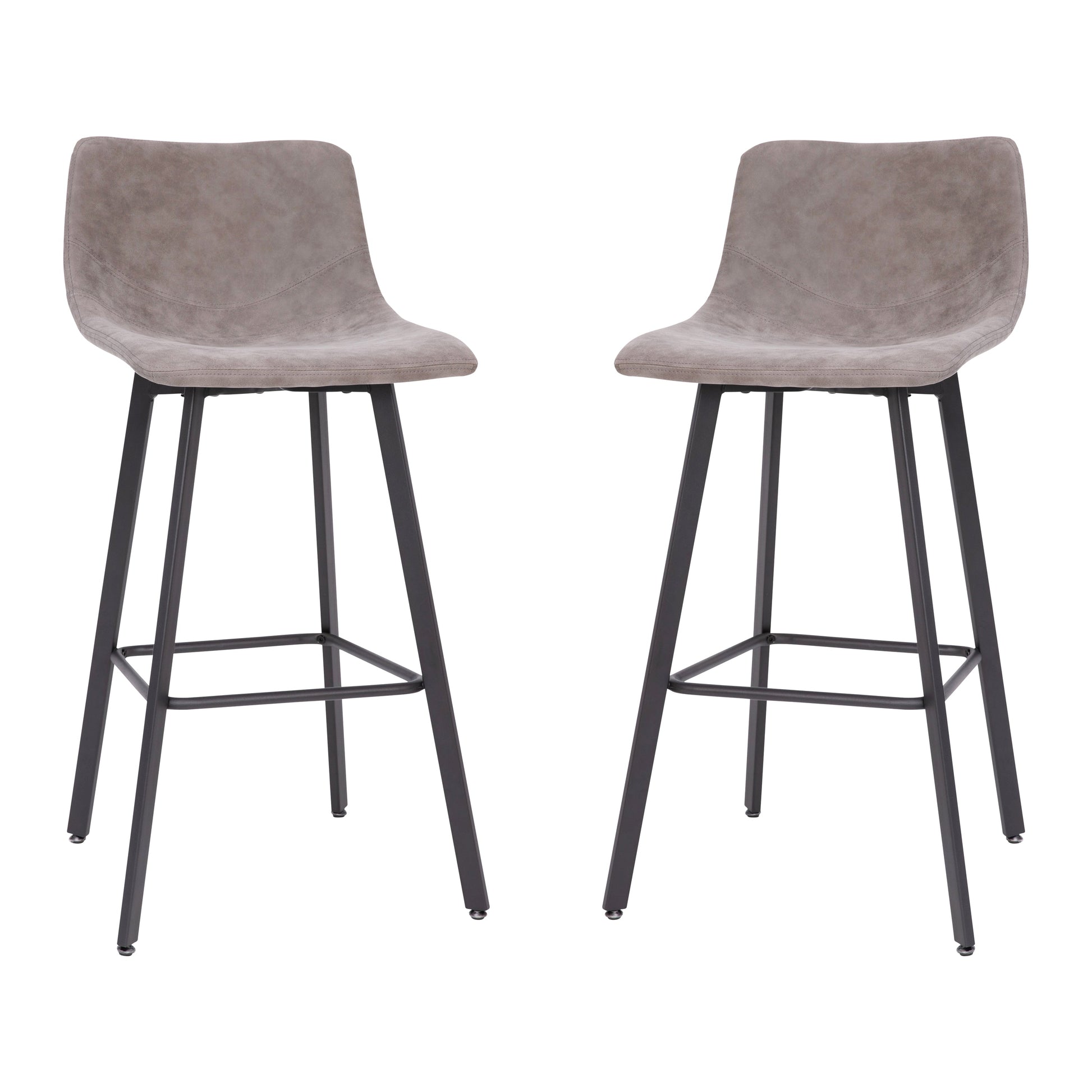 Caleb Modern Armless 30 Inch Bar Height Commercial Grade Barstools with Footrests in Gray LeatherSoft and Black Matte Iron Frames, Set of 2 Dimensions: 19"W x 20"D x 36.75"H
