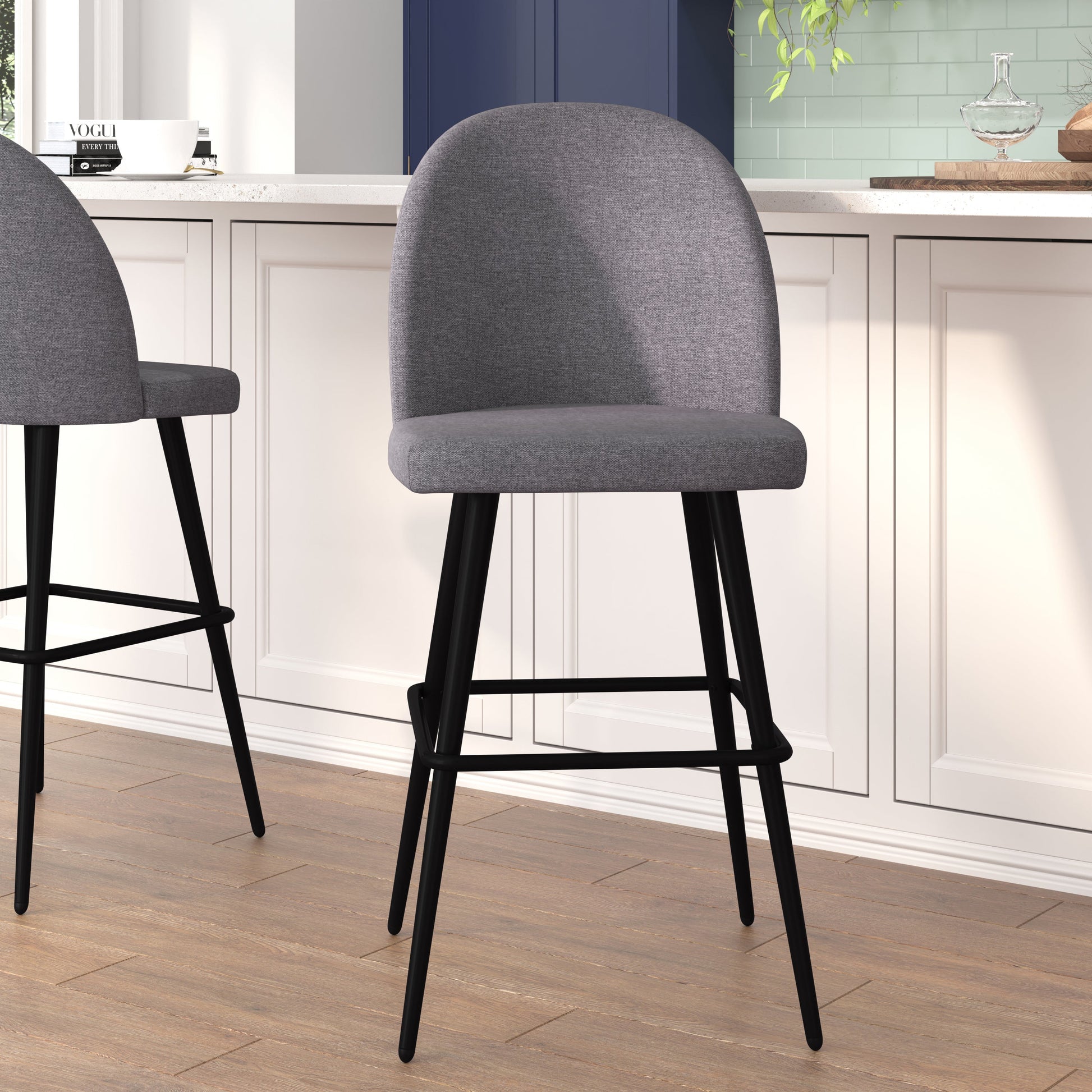 2PK 30" Gray Linen Barstool AY-1026H-30-GYFAB-GG