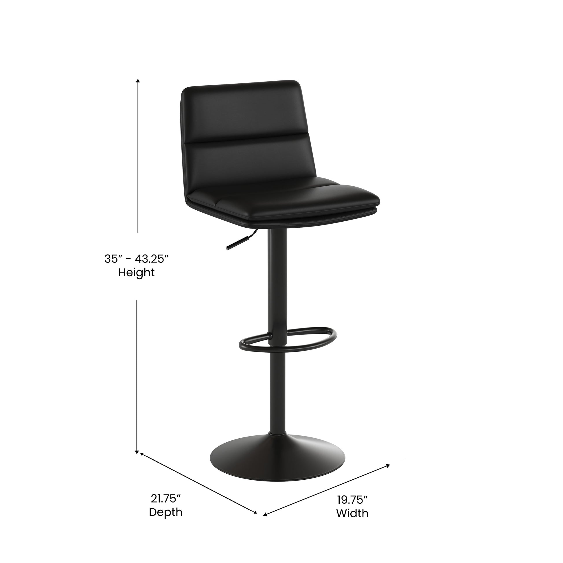 Hughes Commercial Grade Modern Mid-Back Adjustable Height LeatherSoft Channel Stitched Barstools, Set of 2, Black Dimensions: 19.75"W x 21.75"D x 35" - 43.25"H