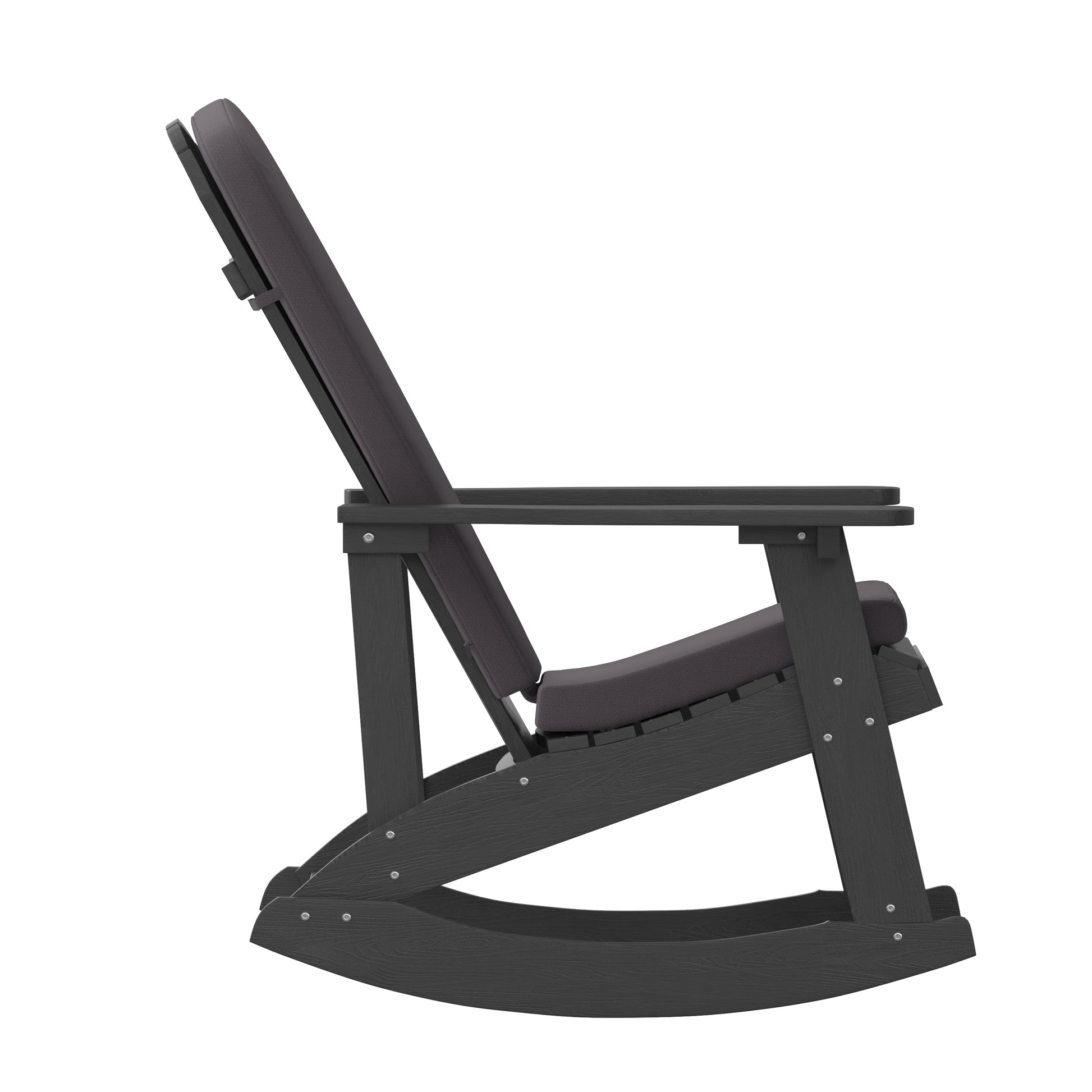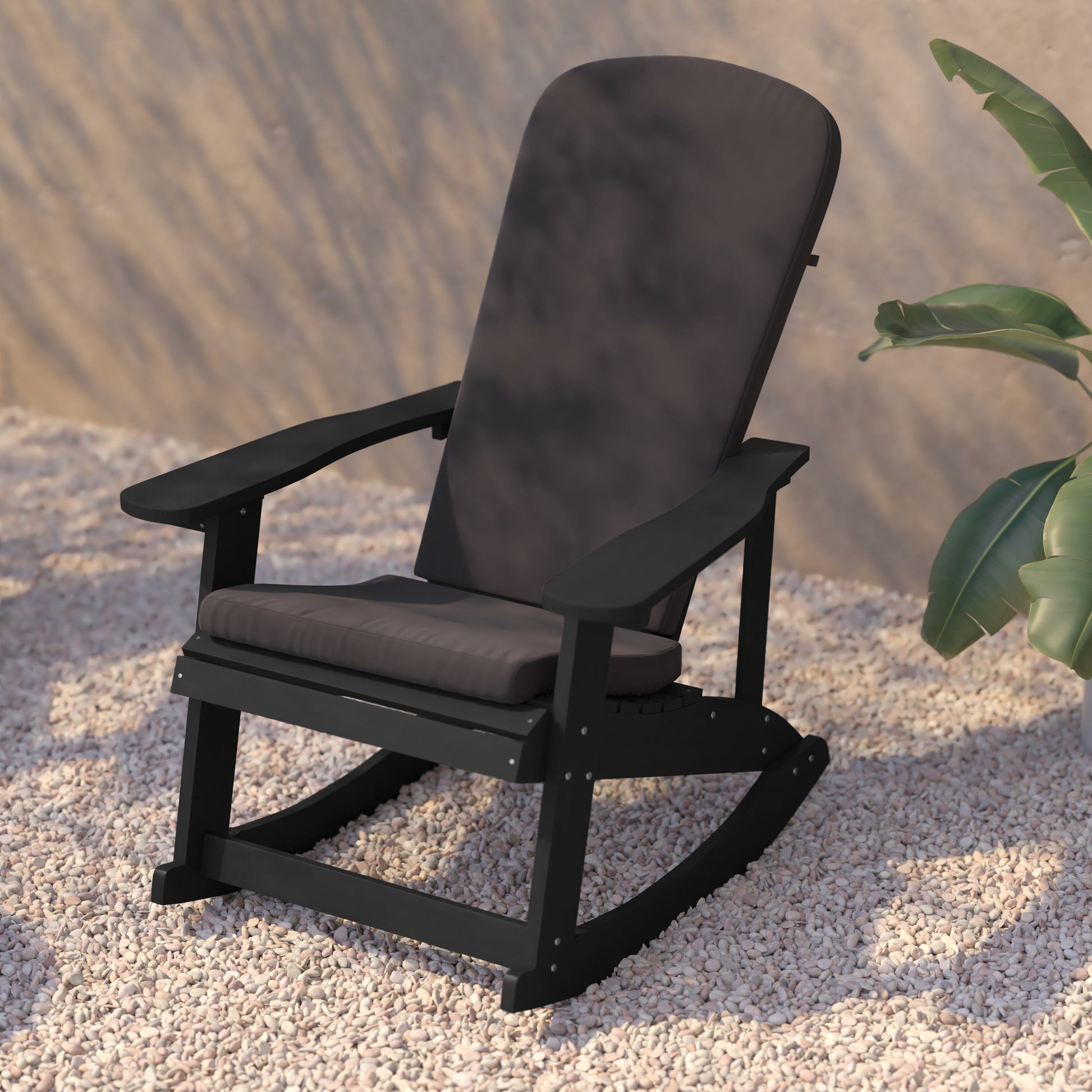 Savannah Set of 2 All-Weather Poly Resin Wood Adirondack Rocking Chairs in Black with Gray Cushions for Deck, Porch, and Patio Dimensions: 29.5"W x 37.75"D x 39.5"H